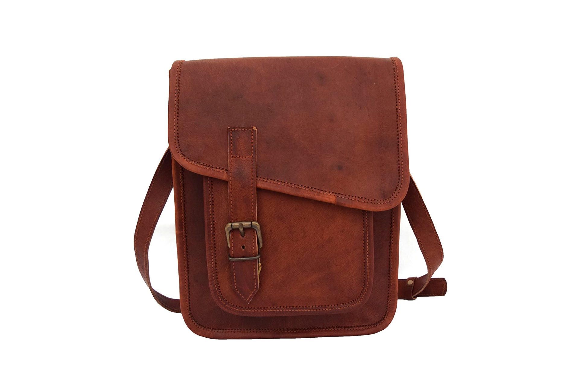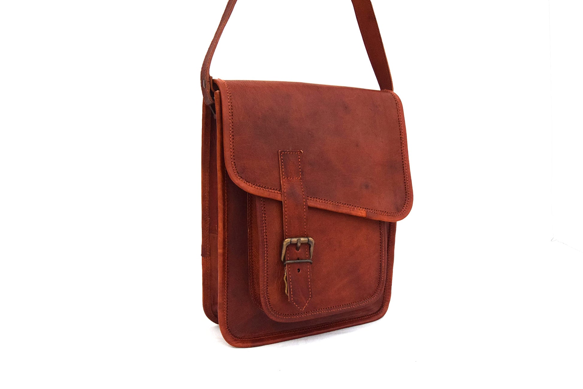 - *11x9 Inches Vintage Brown Leather Messenger Bag Made With Finest Quality Goat Leather by Experienced Craftsmen from India.