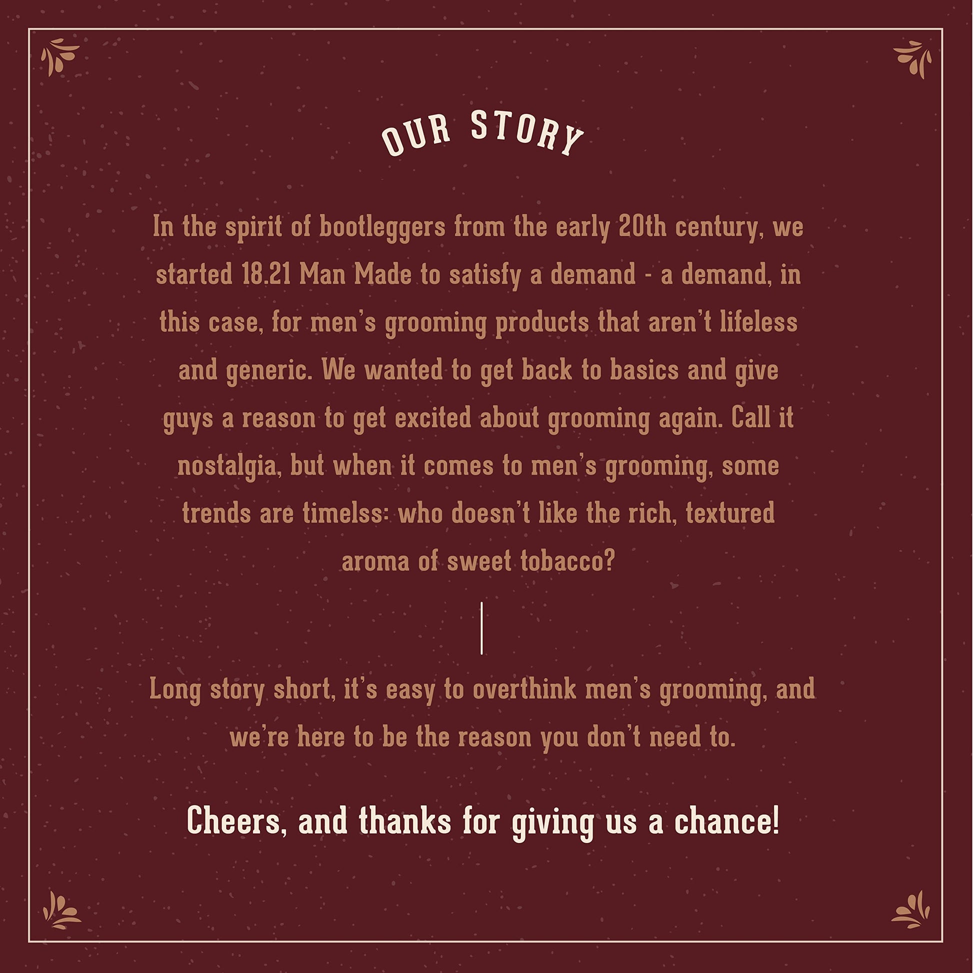 The 18.21 Man Made barrel house was inspired by the spirit of prohibition era bootlegging to meticulously craft premium grooming provisions that the society of Men will take pride in owning.