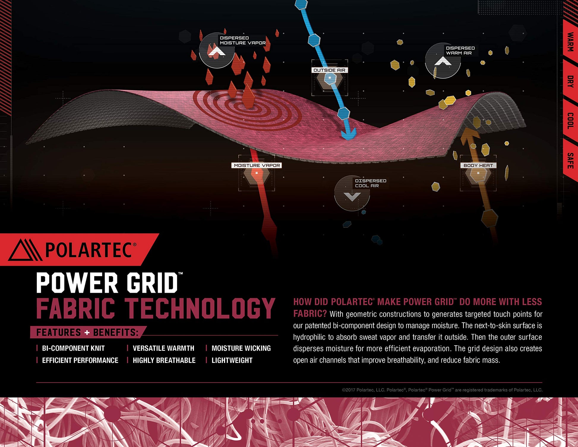 It is made of one of the most complicated Polartec baselayer fabrics - Polartec Power Grid. The geometric