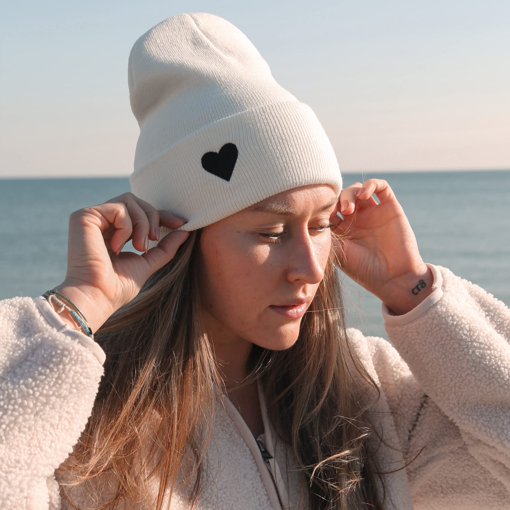 Beanie: The perfect accessory for anyone looking to spice up their outfit with someadded edge. This cuffed beanie features an embroidered heart, which makes it not only stylish but also romantic!