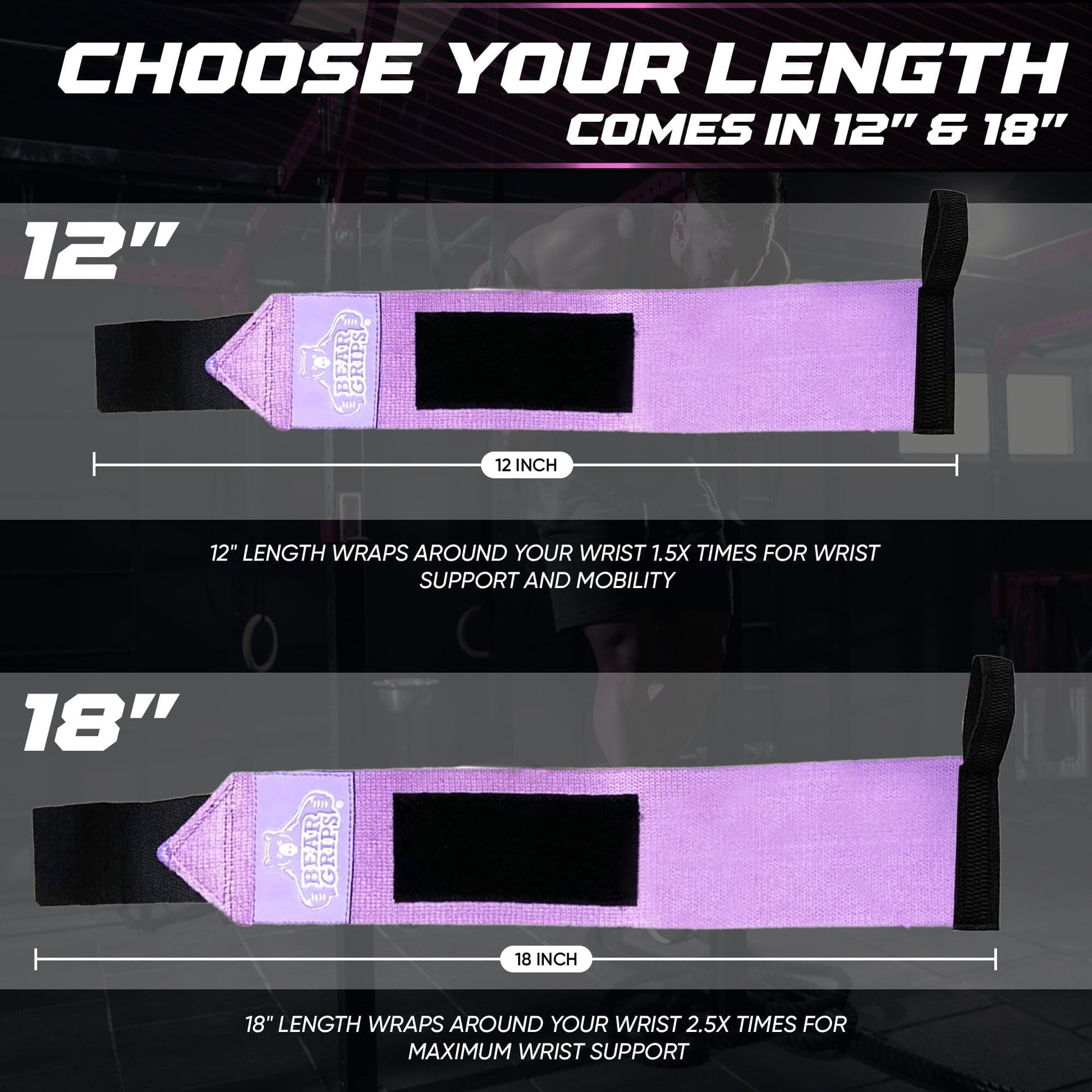 Bear Grips Extra Strength Gym Wrist Wraps for Weightlifting | 2 Wrist Wraps Per Pack | 12" & 18" | Unisex Accessory for Fitness, Gymnastics, Exercise