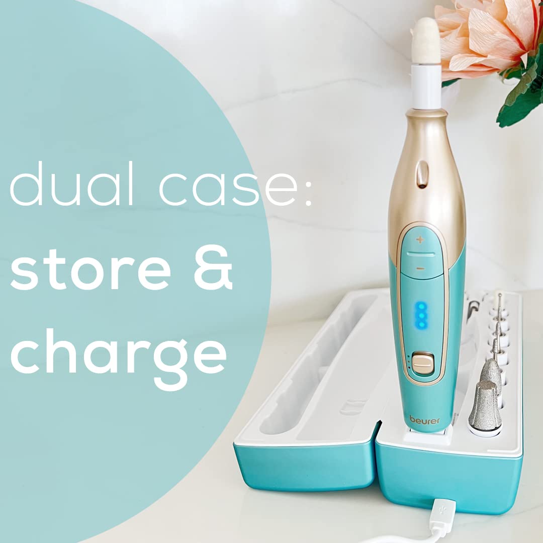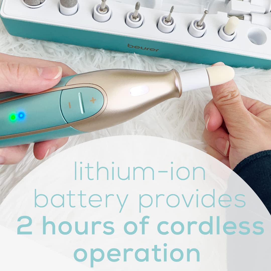Beurer MP84 Professional Manicure & Pedicure Nail Drill Kit, 14-Piece Cordless Electric Nail File with 10 Attachments, LED Light, Adjustable Speed, Charging Storage Case