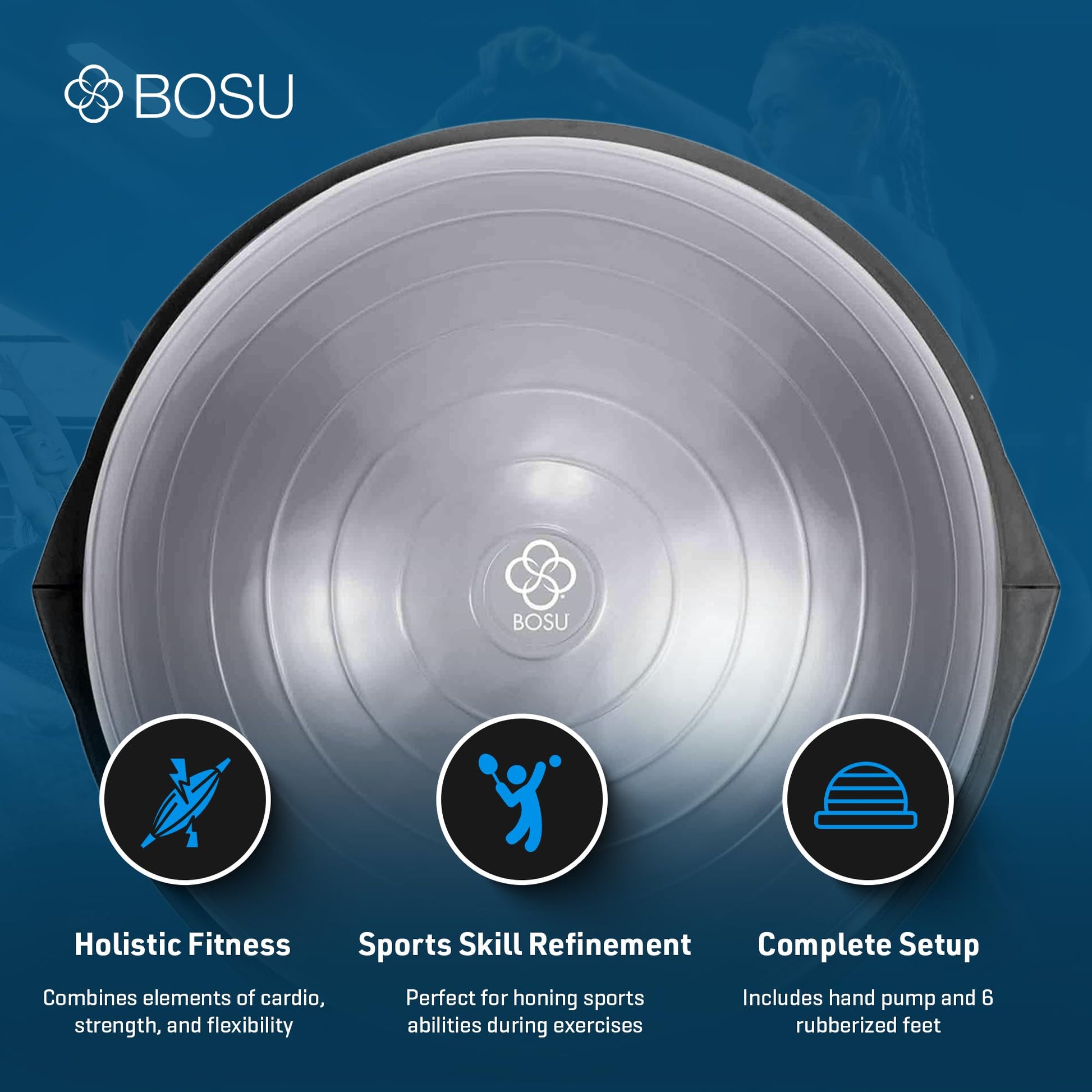 BOSU Home Gym The Original Balance Trainer with 25 Inch Diameter and Included Hand Pump for Workout Exercise Equipment, Silver