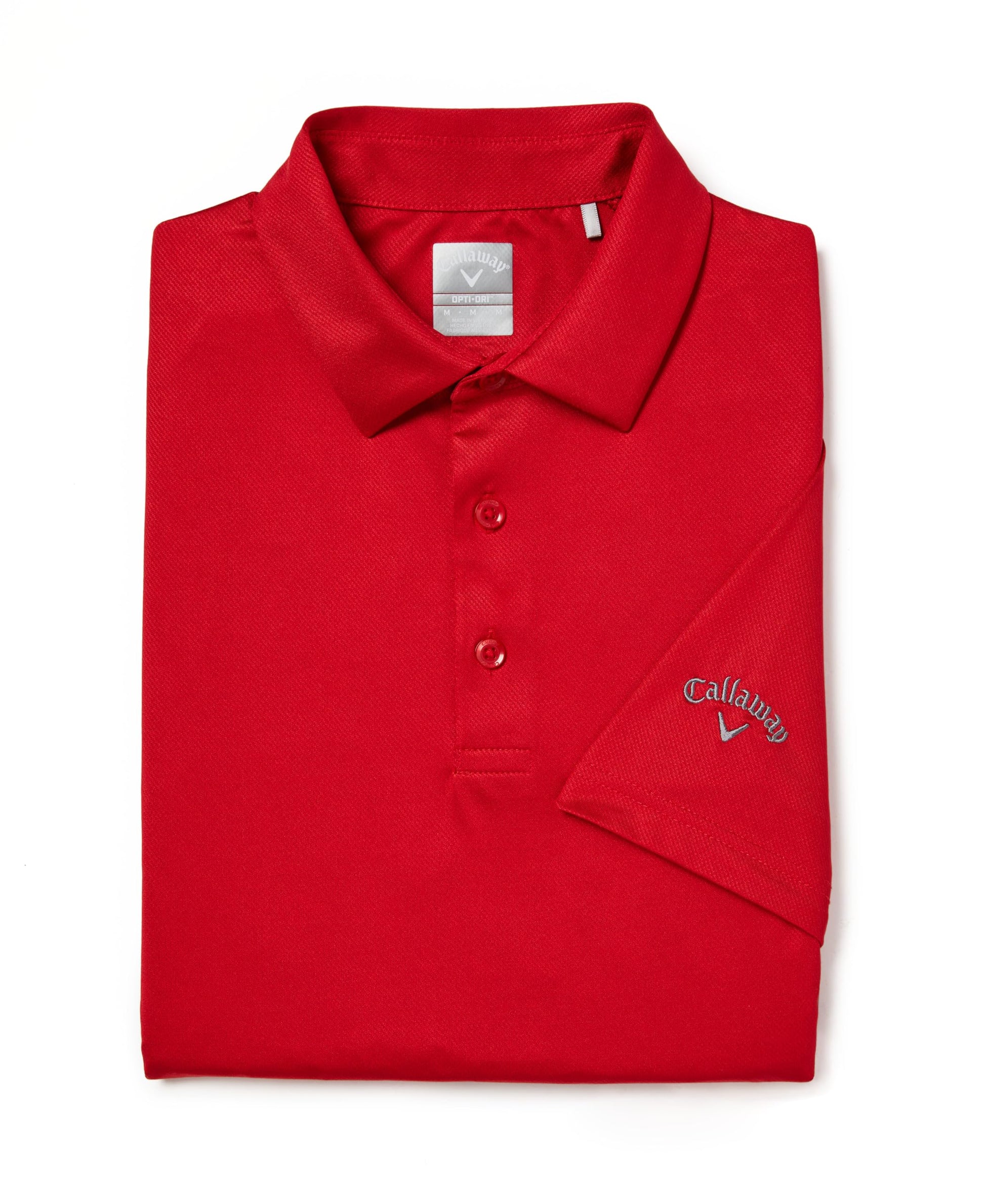 On the green or in the clubhouse, this Callaway men's golf shirt has you covered. A versatile addition to your golf attire, the polo shirt is loaded with features designed to help you excel as you drive, chip and putt. Swing Tech technology and added stretch in the fabric provide a full range of motion for smooth swings down the fairway. Opti-Dri moisture-wicking technology pulls sweat away from the body, keeping you dry and comfortable. For sunny days spent outdoors, the collared golf shirt is equipped with sun protection that safeguards against harmful UV rays. A comfortable choice for long rounds on the links, it is made from soft and smooth jersey fabric that is lightweight and breathable. In addition to its performance-driven design, this versatile short sleeve golf shirt features a stylish allover chevron print that complements the classic three-button placket and self collar. The machine washable golf wear is easy to care for, and it keeps its good looks wash after wash. A great fit for your golf clothing collection, this polo golf shirt is available in a range of regular sizes as well as Big & Tall for golf shirts for big guys. If you're looking for the best golf shirt for men, you can't go wrong with the classic and relaxed style of this Callaway polo shirt. Add it to your golf apparel rotation and give your game a boost.