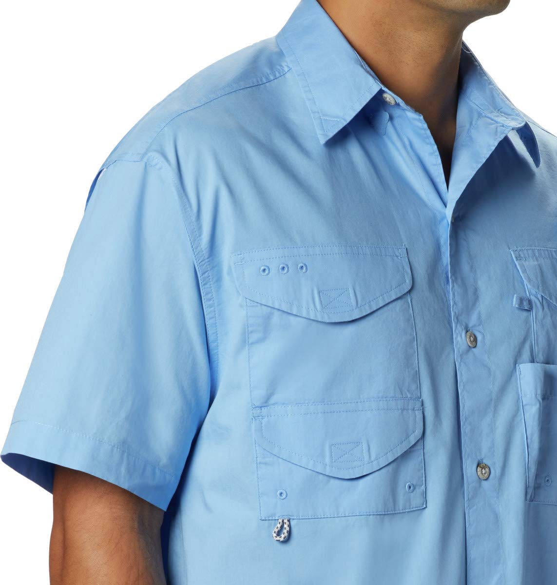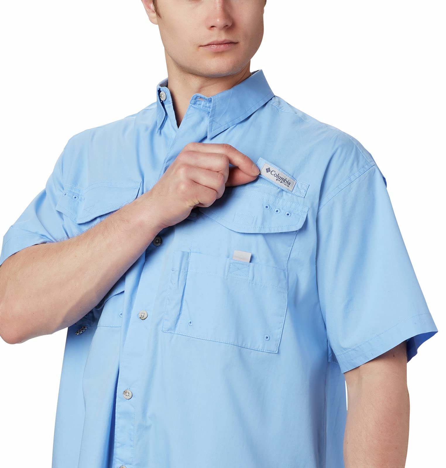Designed to meet the needs of active anglers, this shirt is made of soft 100% cotton poplin for an easy fit.Made to fish with plenty of pockets and a rod holder to help free up your hands while you tie your next lure.A mesh-lined vented back keeps things breezy and comfortable, while a utility loop keeps gear handy.Columbia offers this short sleeve shirt in multiple colors and sizes.Extended sizing available.Relaxed Fit.To ensure the size you choose is right, utilize our sizing chart and the following measurement instructions: To determine the neck size, measure at the base or thickest part of your neck.For the chest, measure at the fullest part of the chest, under the armpits, and over the shoulder blades, keeping the tape measure firm and level.