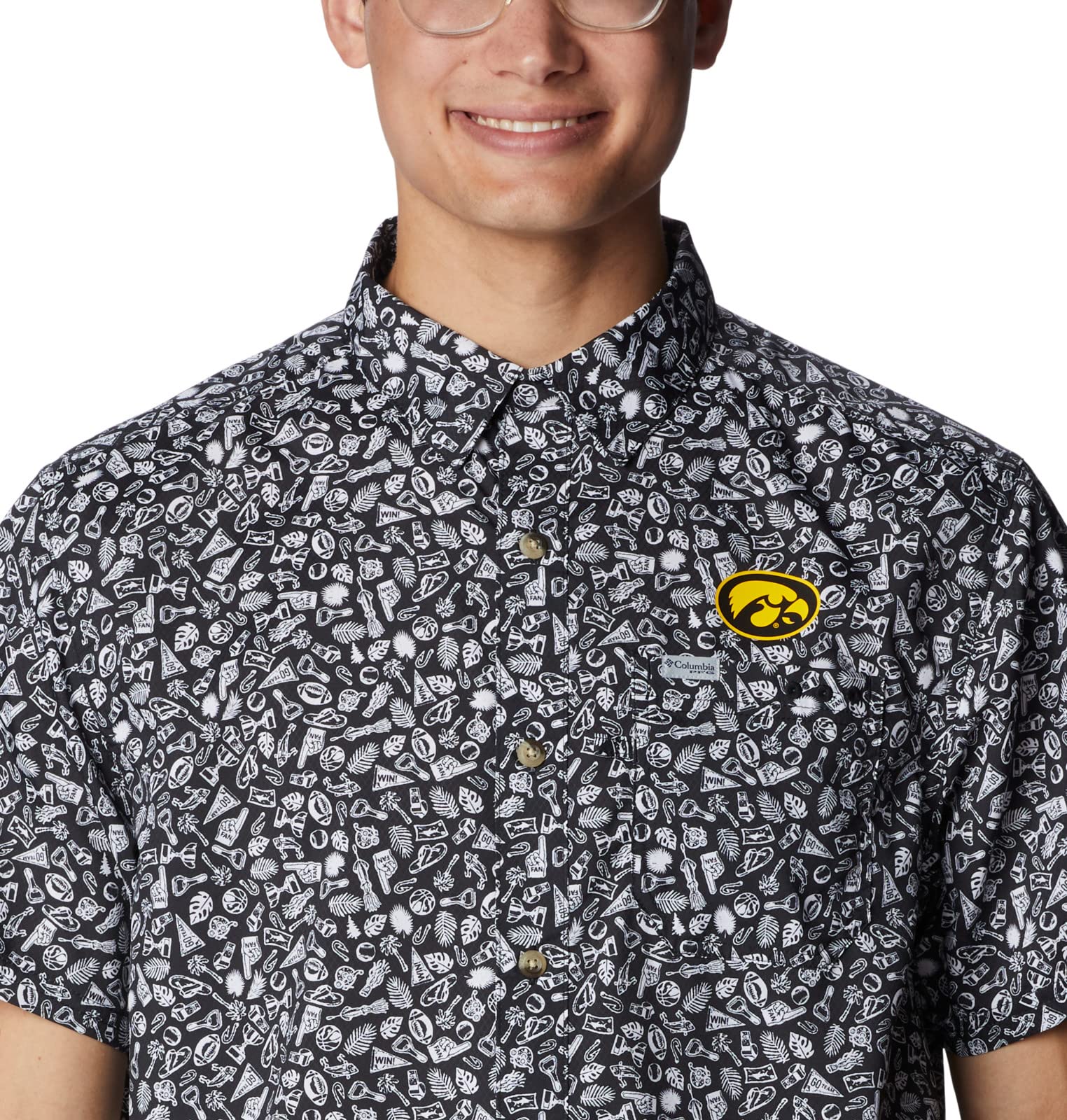 Columbia Men's Collegiate Super Slack Tide Shirt, IW-Black Gameday Print, Small