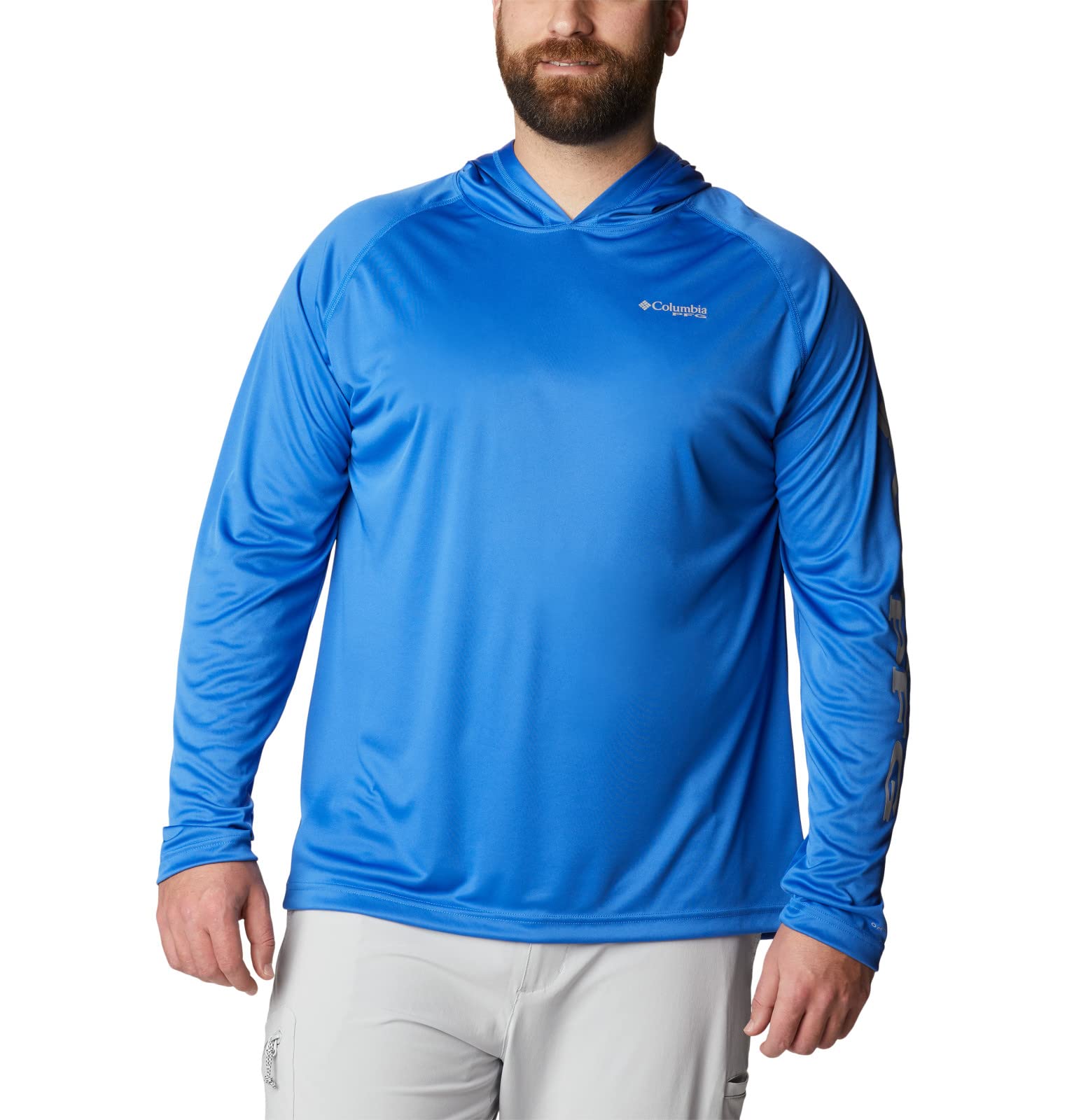 Columbia Mens PFG Terminal Tackle Long Sleeve Fishing Hoodie, Vivid Blue/Cool Grey Logo, 1X