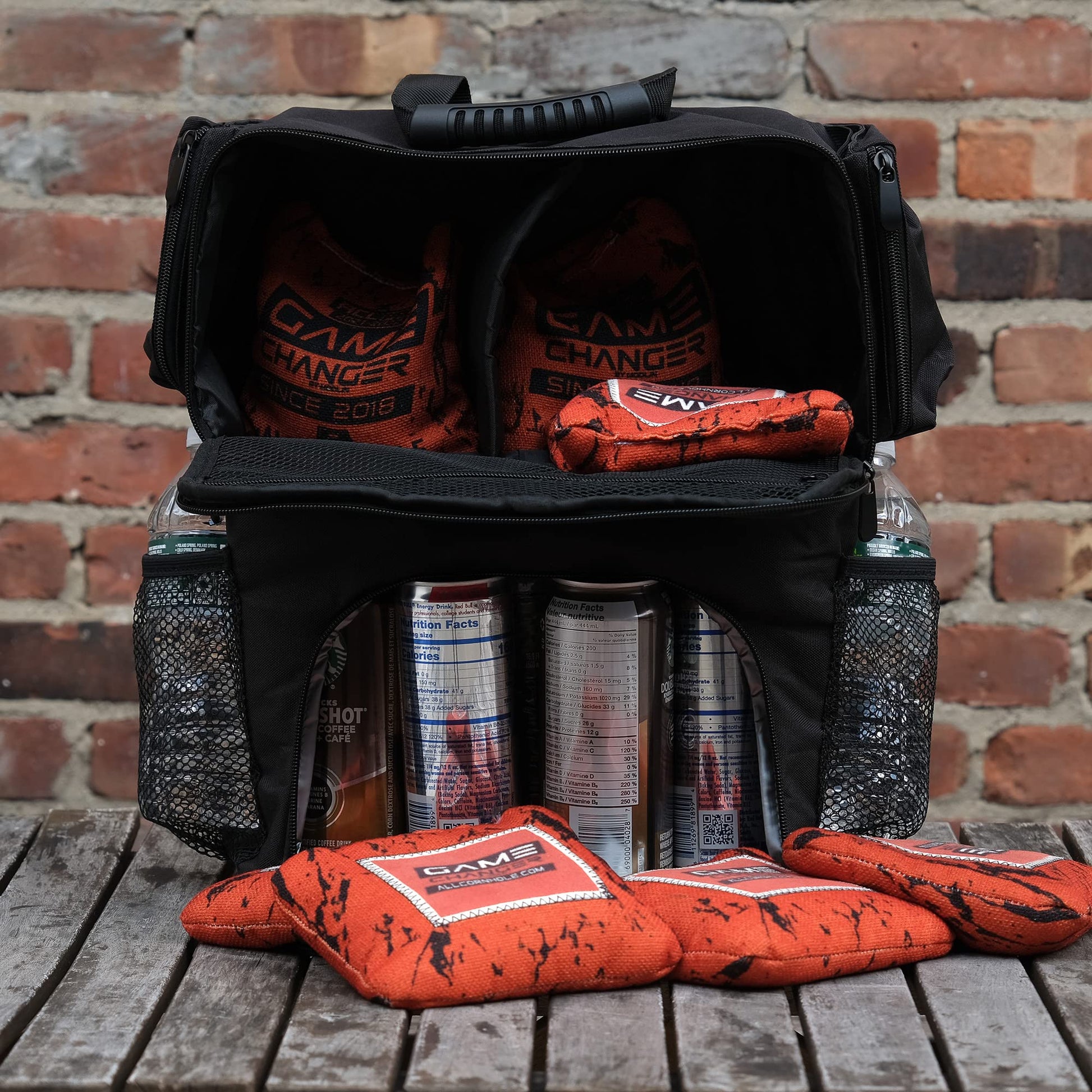 Cornhole Cooler Backpack, Holds up to 2 Sets (8 Bags), Bottle Opener, Cooler Holds up to 12 cans, Extra Compartments for Phone, Storage
