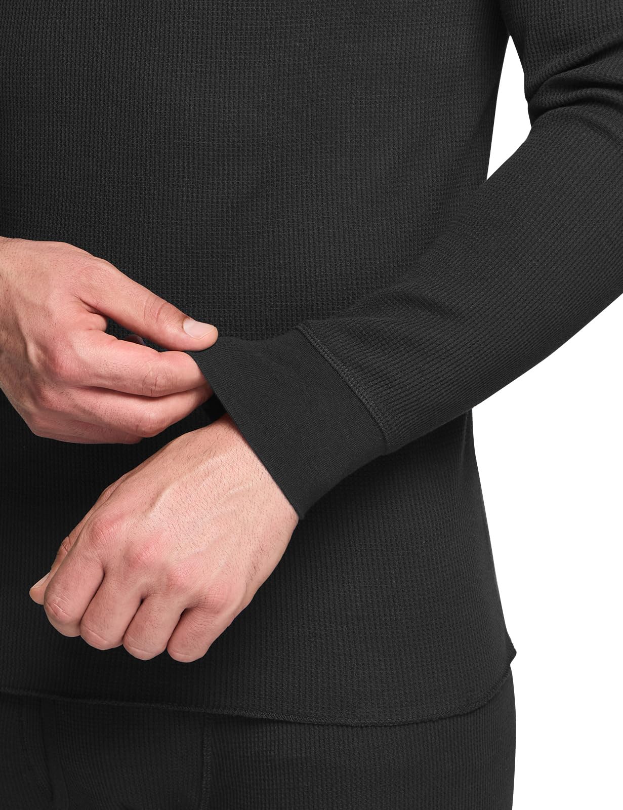 CQR Men's Long Sleeve Thermal Underwear Tops, Midweight Waffle Crewneck Shirt, Winter Cold Weather Thermal Shirts, 1 Piece of Top Black, Large