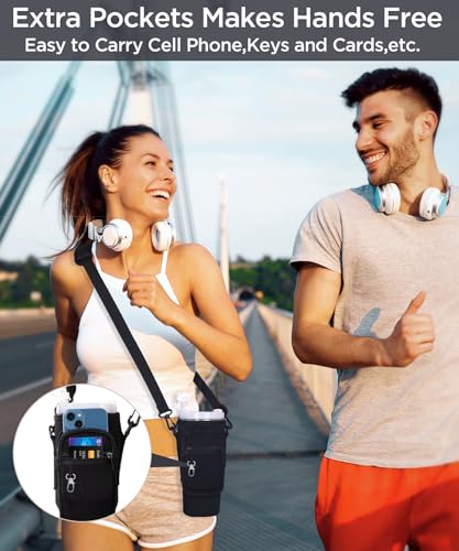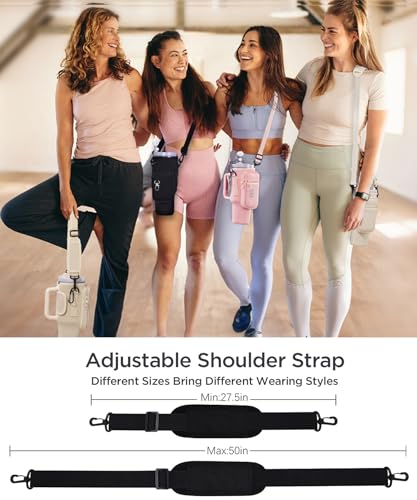 - 【Adjustable Shoulder Strap and Multiple Pockets】For Stanley Quencher 30 oz Cup Sleeve comes with a removable and adjustable padded shoulder strap, the shoulder strap can be easily adjusted between 27.5' and 50' to fit a wide range of body shapes. The water bottle holder for stanley 30 oz accessories is designed with two front pocket designs that provide plenty of room for all your personal belongings such as smartphones, cash, cards,keys,etc
