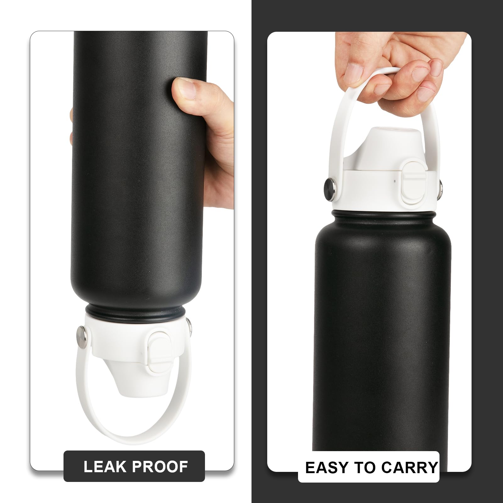 - Dust proof and Leak proof : The flip-down cover protects the drinking spout from dirt. Button lock prevents accidental opening of the leak proof lid. Rubber stopper with good air-tightness makes the water bottle better heat preservation and leak proof
