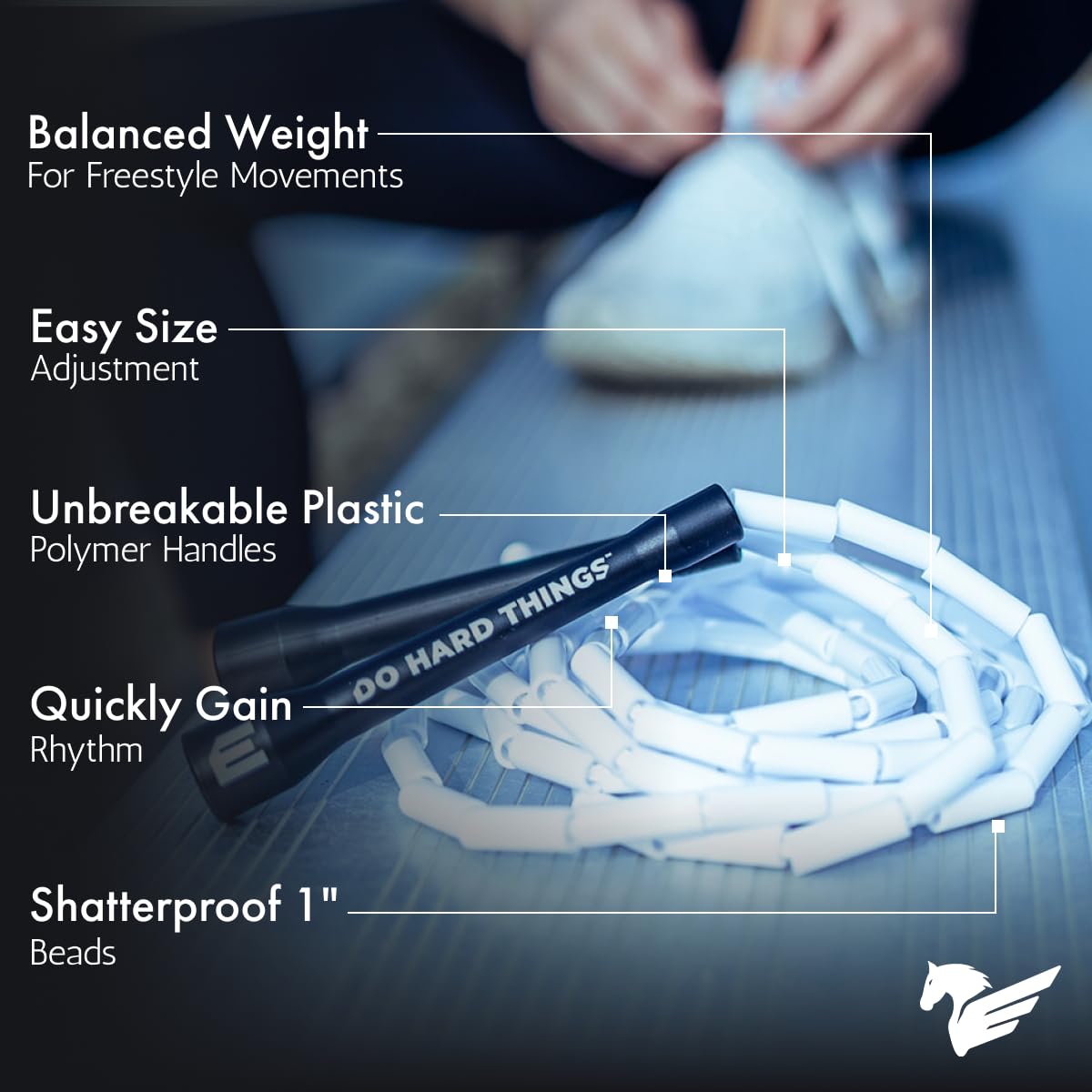 Elite Jumps Beaded Jump Rope | Adjustable Jump Ropes for Fitness w/Unbreakable Handles and Shatterproof Beads | Crossover Jump Rope, Perfect Addition to Your Exercise Equipment | Segmented Jump Rope