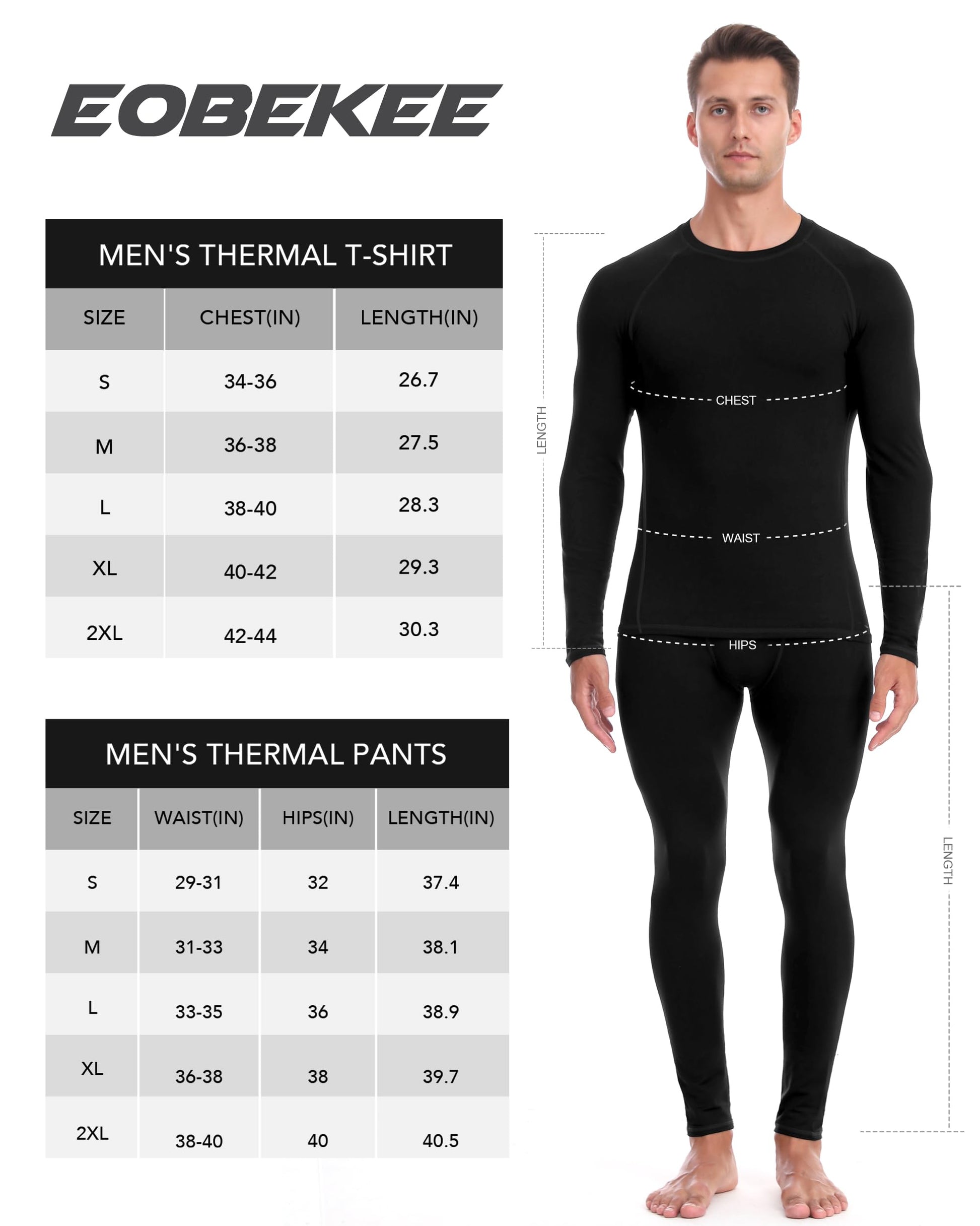 EoBeKee Mens Thermal Underwear Set - Fleece Lined Long Johns Thermals Top and Bottom Base Layer for Cold Weather Winter Ski Black