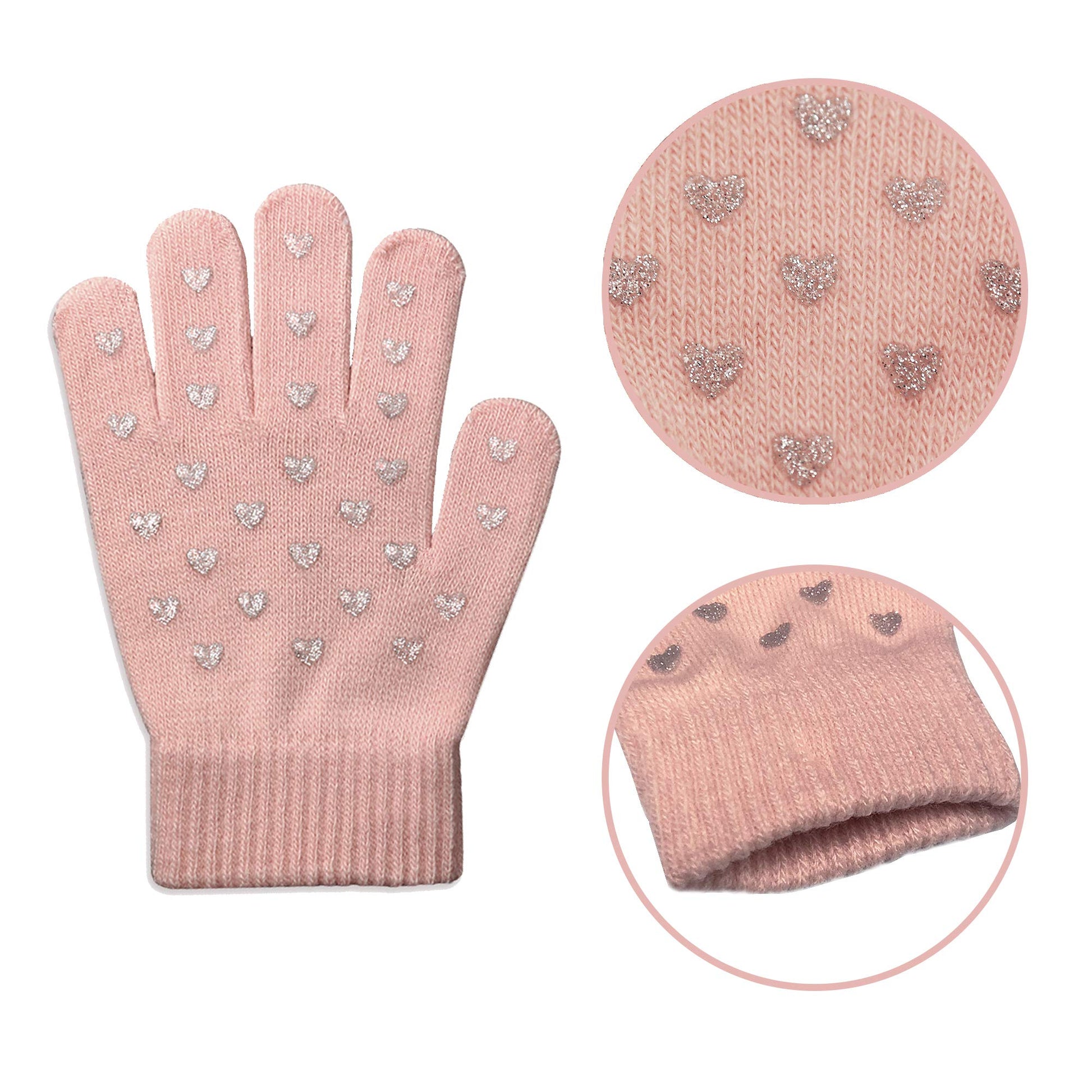 Evridwear Boys Girls Magic Stretch Gripper Gloves 3 Pair Pack Assortment, Kids One Size Winter Warm Gloves Children (6-8Years, 3 Pairs Heart Printing)