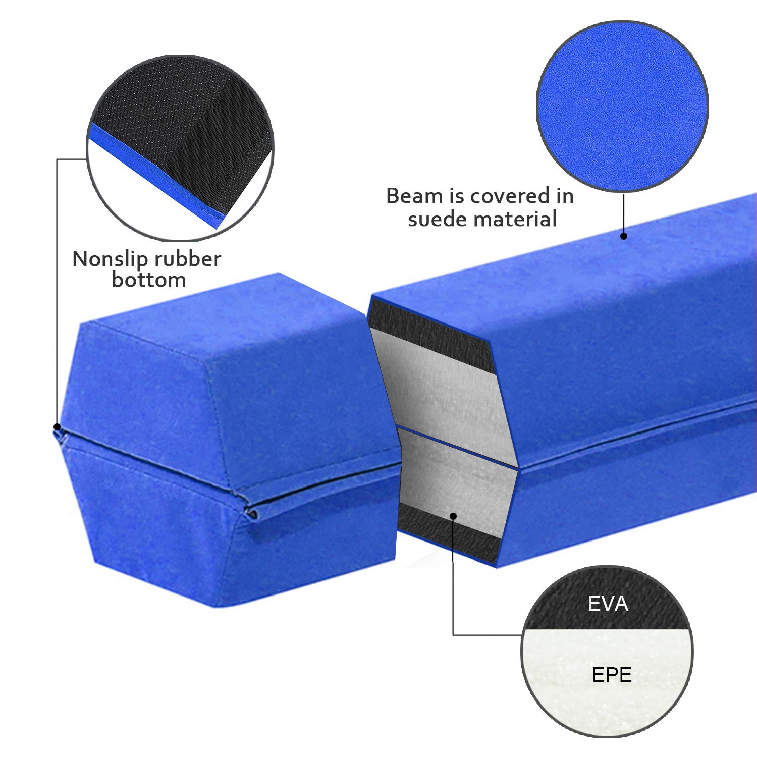 - THICK EXERCISE PAD THAT WONT FLATTEN OUT: Made of high density EVA and EPE foam, our padded beam is covered in suede-like material with a nonslip rubber bottom for a soft sturdy practice surface that won't flatten over time