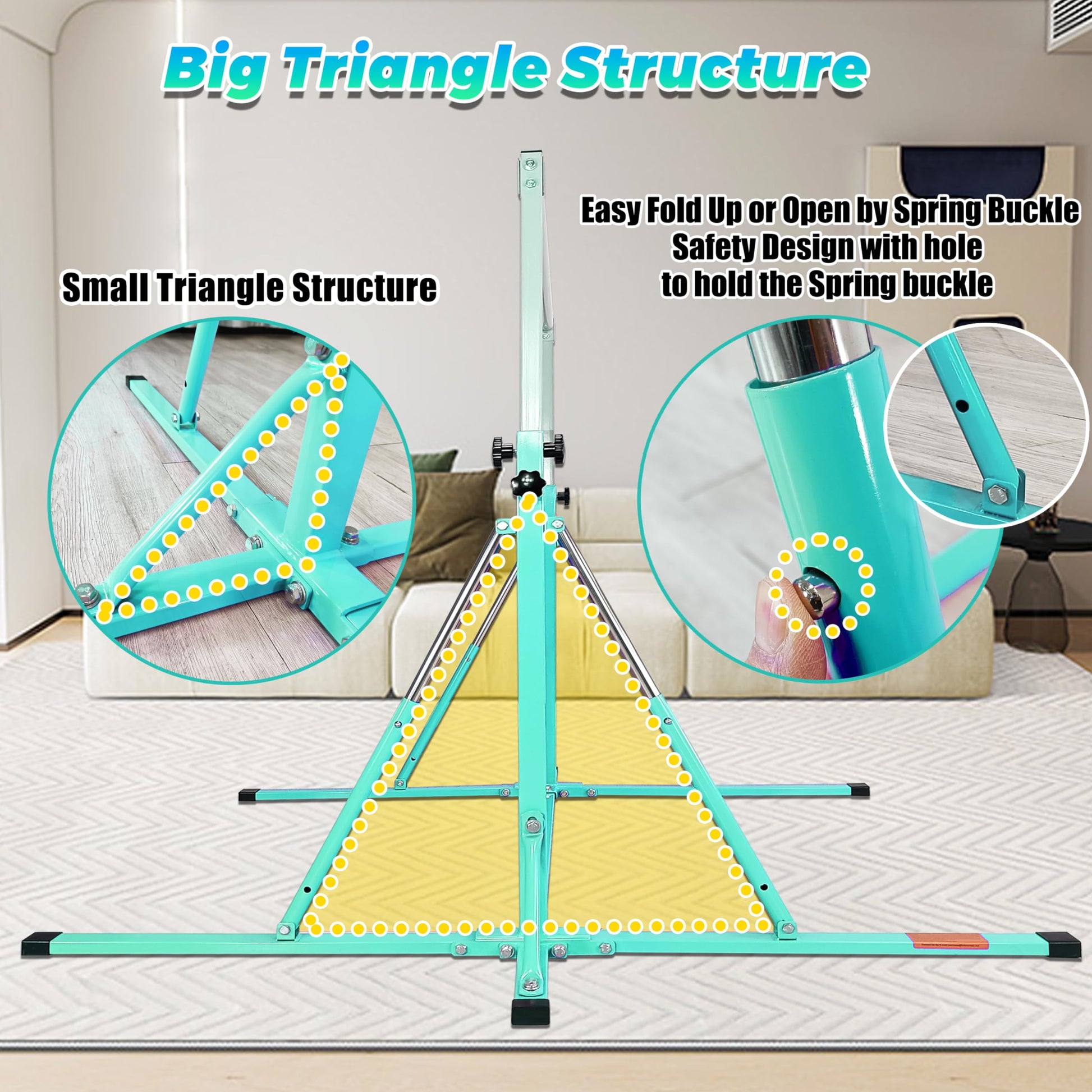 - Big Triangle Structure:There are totally six big triangle shape stucture of base,additonal side extension bar with triangle shape ,all of these ensures the bar much more Stability during any skill training. No wobble or shaking,which bring excellet training experious for gymnstics with all levels