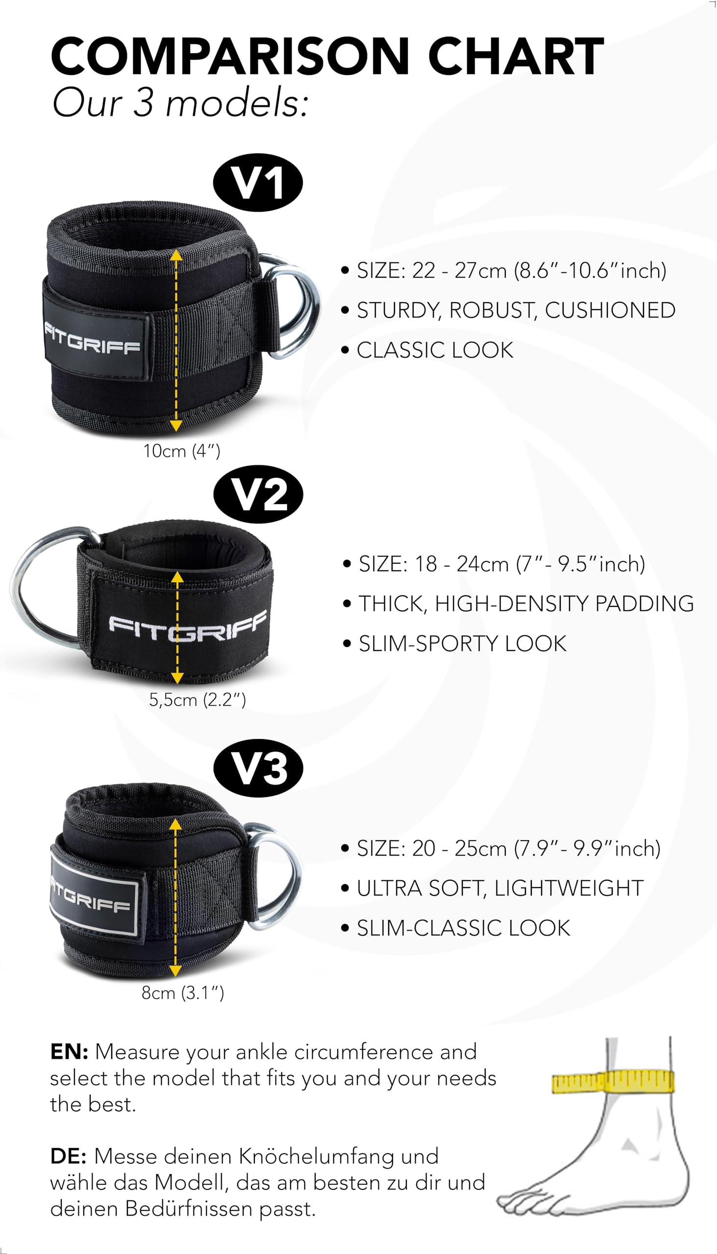 - BUILT TO LAST - Crafted for durability, FITGRIFF's Ankle Straps boast industrial-strength Velcro, reinforced seams, and premium construction. Their innovative design includes double D-rings to ensure an even distribution of weight, providing steadfast support through every rep and set.