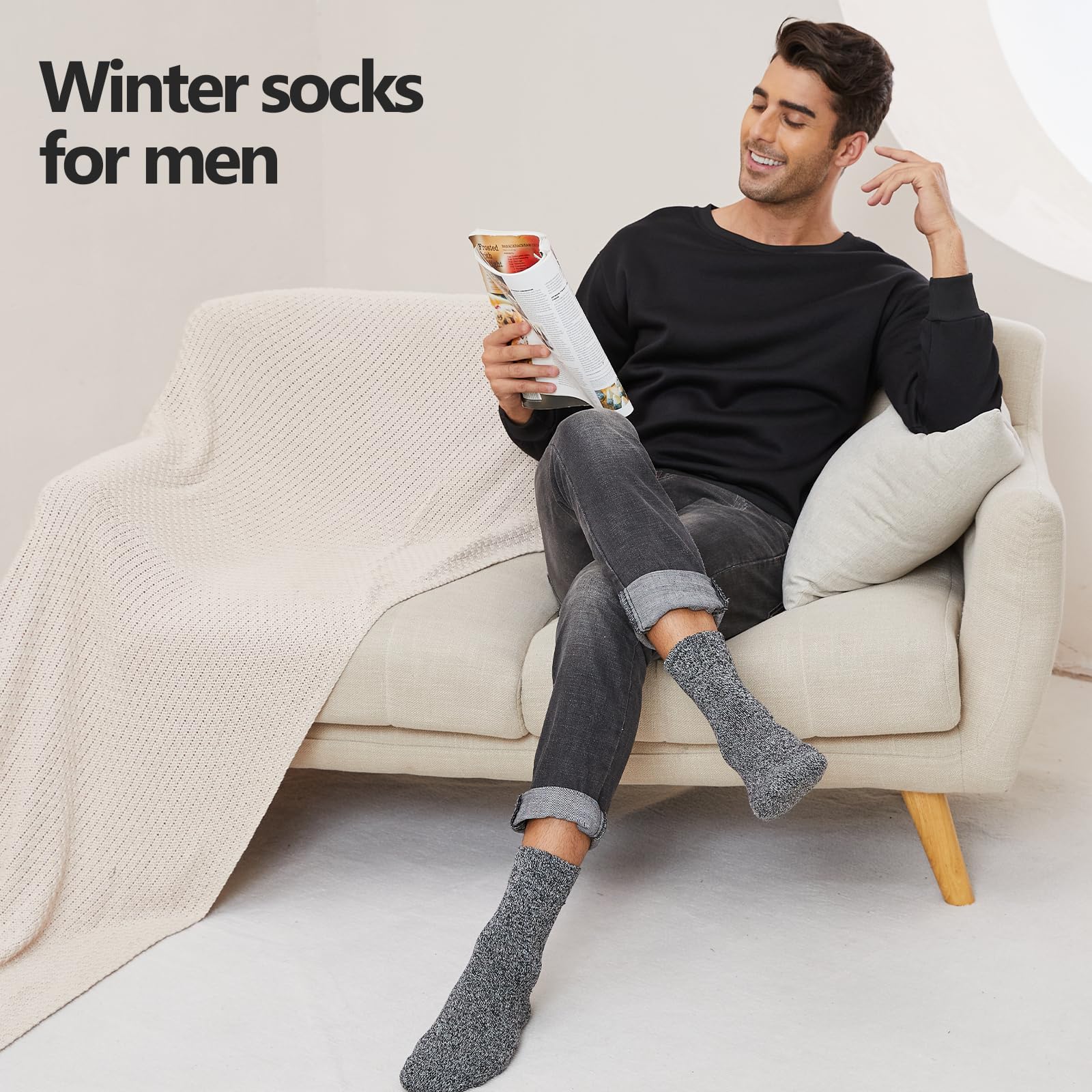 - 【Thicker & Warmer】Thickened winter socks offering three times the warmer of regular ones. Whether relaxing by the fireplace or embarking on a winter hike, they'll keep your feet snug and warm. Experience ultimate winter comfort with mens winter socks.