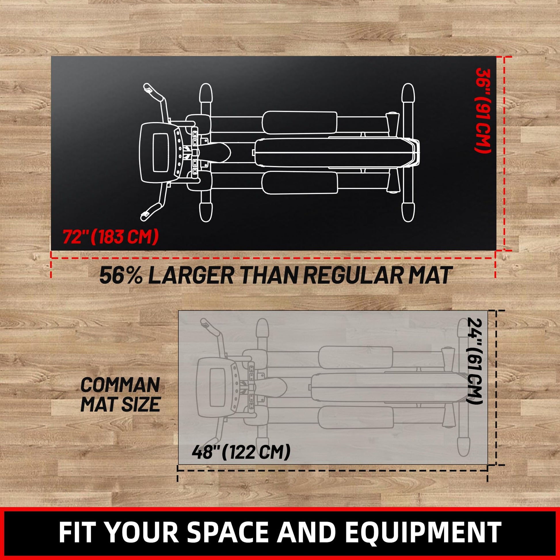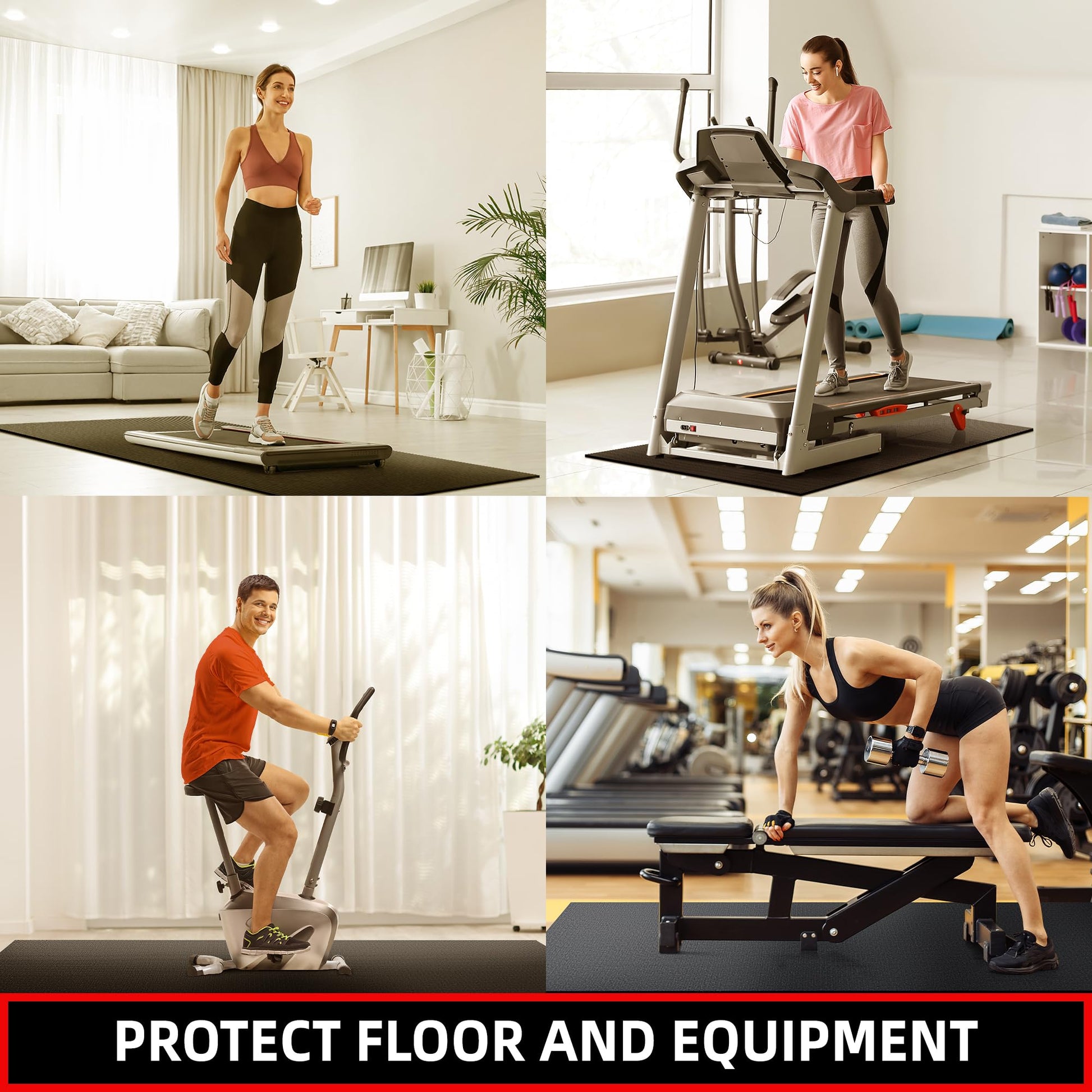 - All-Purpose Mat for Your Needs: Versatile mat for under exercise equipment and workouts; act as a treadmill mat for hardwood floors, elliptical mat, rowing machine mat, exercise bike mat, or mats for exercise equipment like weight benches; your ideal workout mats for home gym like jump rope, boxing, HIIT, Cardio; suitable for low-intensity exercise like yoga, stretching