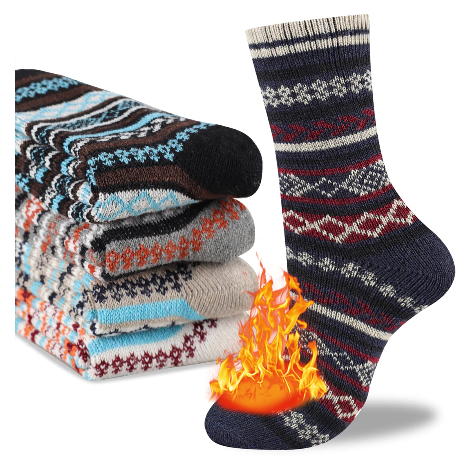 - 【Great Gift Choice】: Great socks often make great gifts In Christmas or holiday. 5 pairs mix colors winter warm wool socks are the perfect presents in winter for family members or friends. These mens super thick wool socks make the perfect present for Christmas or daily wear.