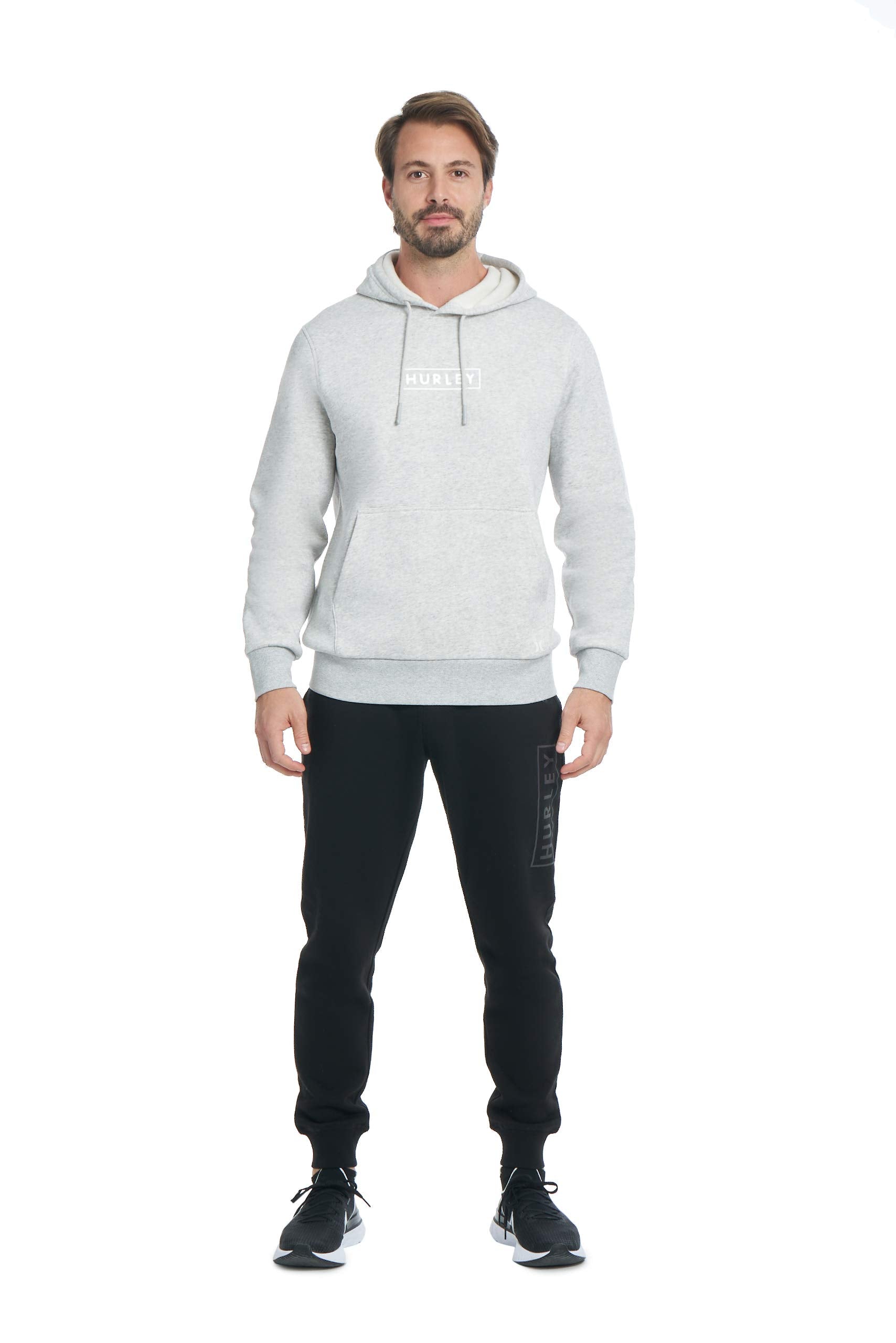 Hurley Men's Boxed Logo Fleece Pullover Hoodie, Light Heather Grey, Medium