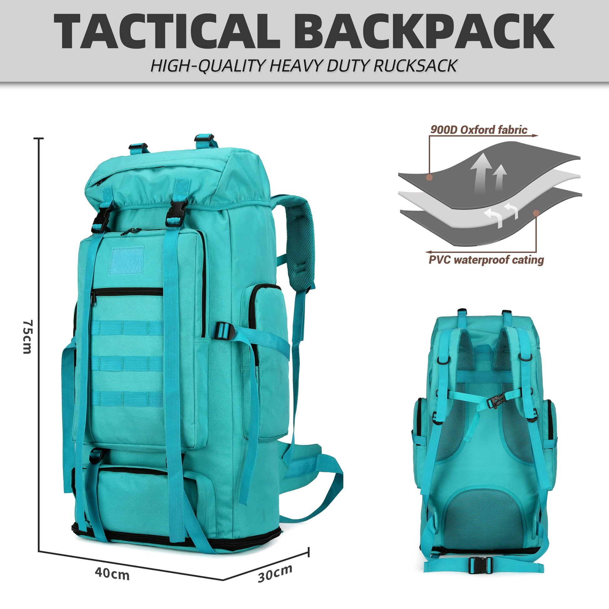 - 【Waterproof Fabric】: The tactical military backpack is made of 600D Oxford cloth and waterproof material. Military backpack thickened density tear-resistant Oxford fabric is waterproof and wear-resistant, tough and odor-free. More durable and scratch resistant than traditional hiking backpacks.