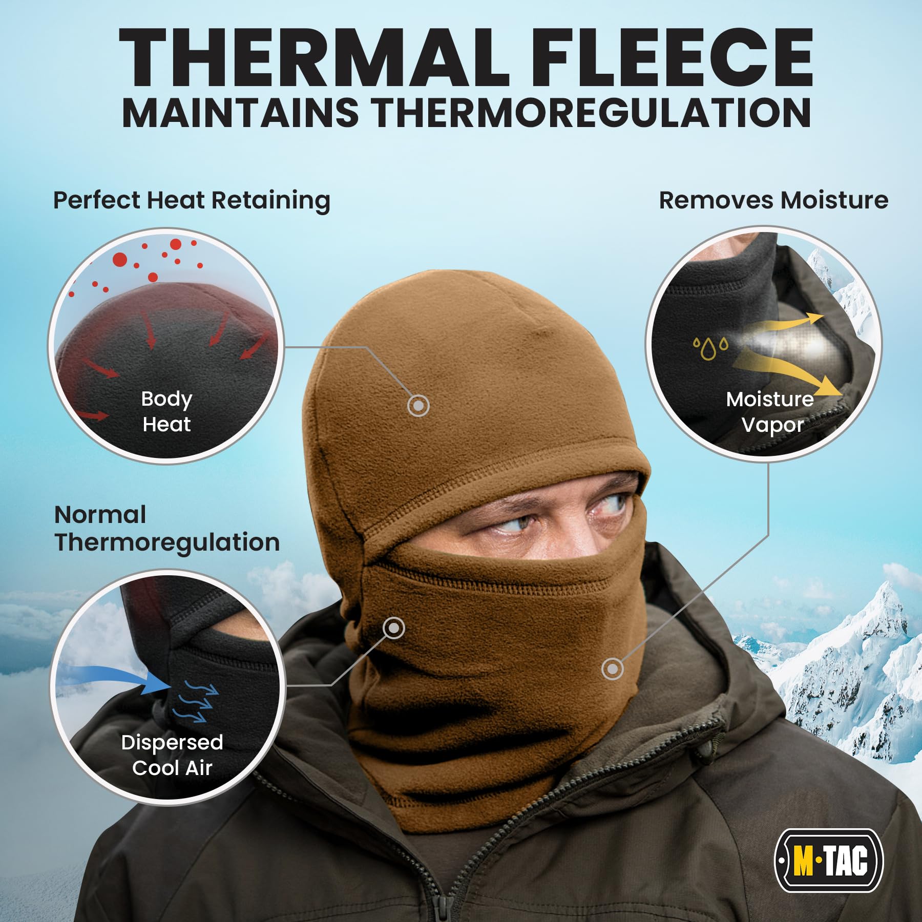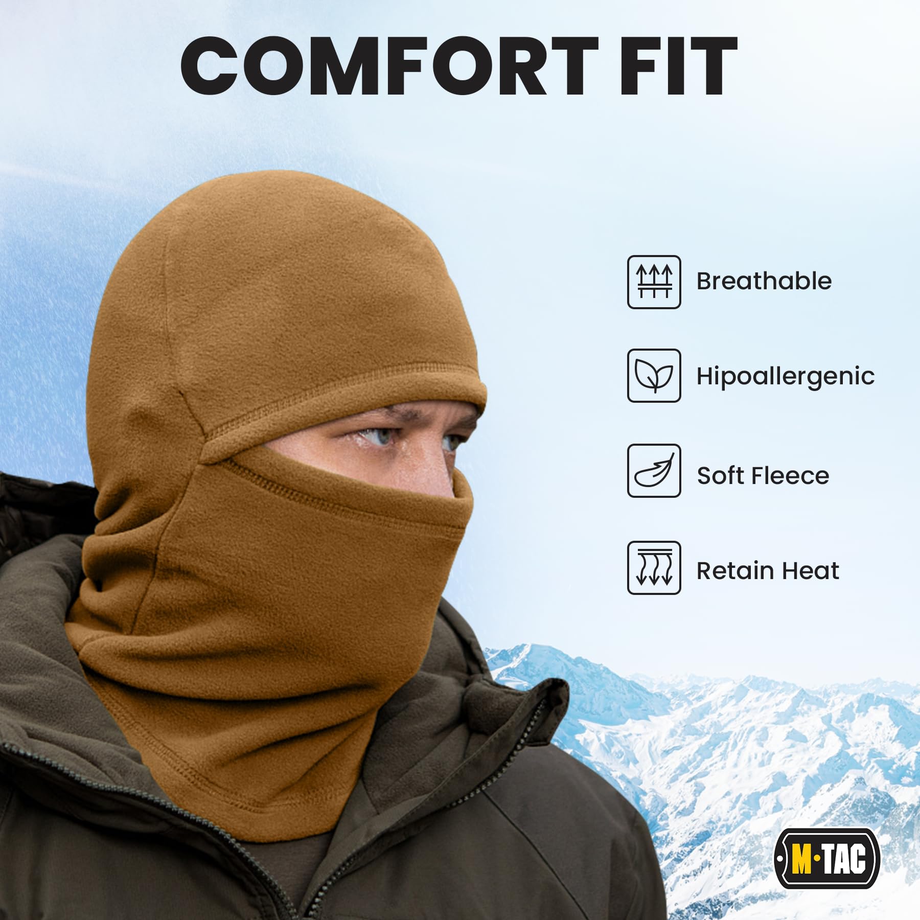 M-Tac Elite Winter Fleece Balaclava - Coldweather Mask Thermal for Winter - Men Tactical Military Style (Coyote Brown)