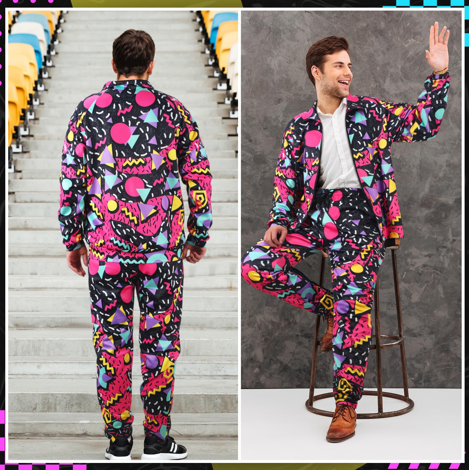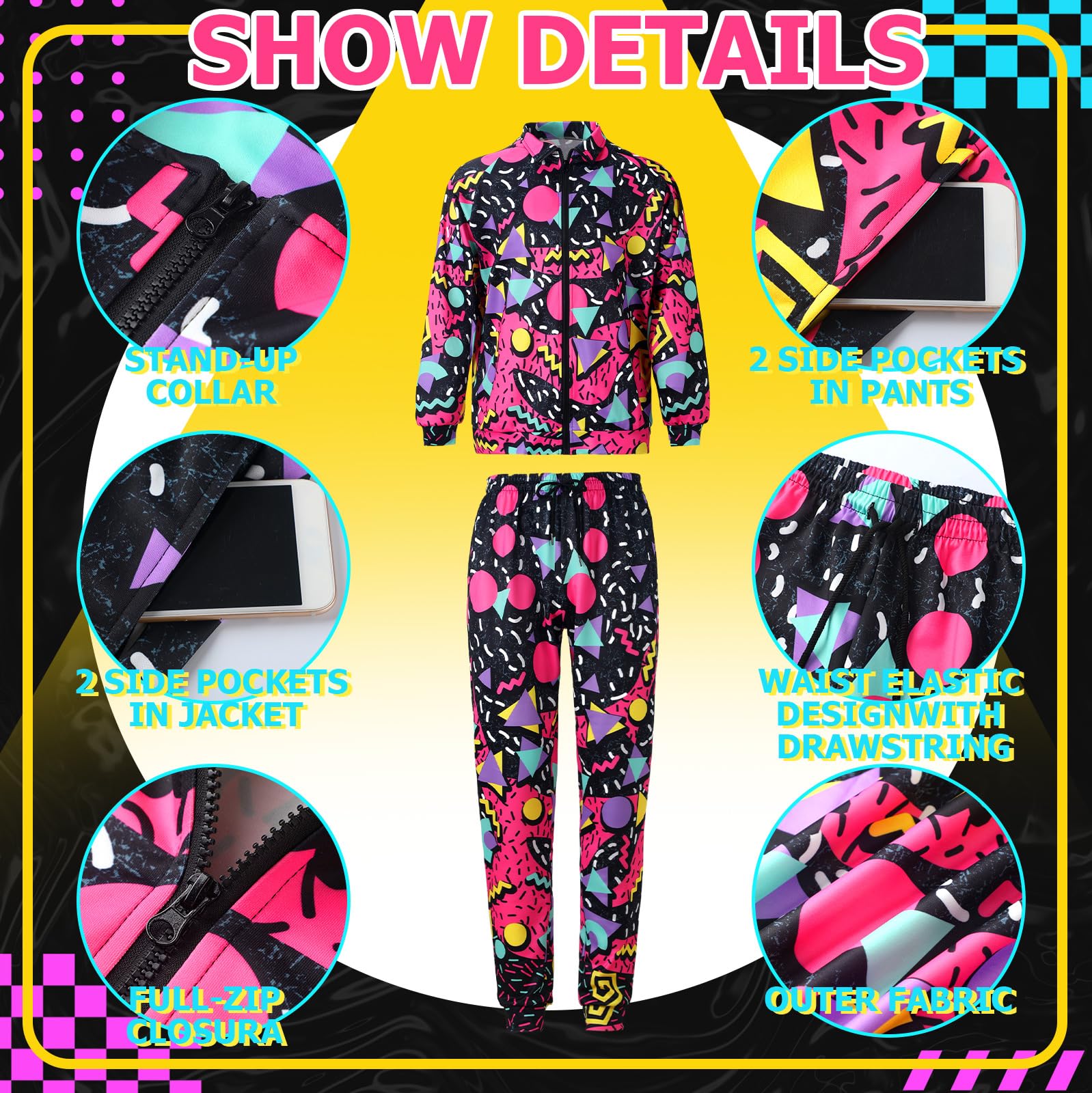 - Package Includes: the 80s outfit for men consists of 1 jacket and 1 pair of pants, designed with an elastic rope and classic patterns; The vintage style will make you more attractive and charming in the crowd