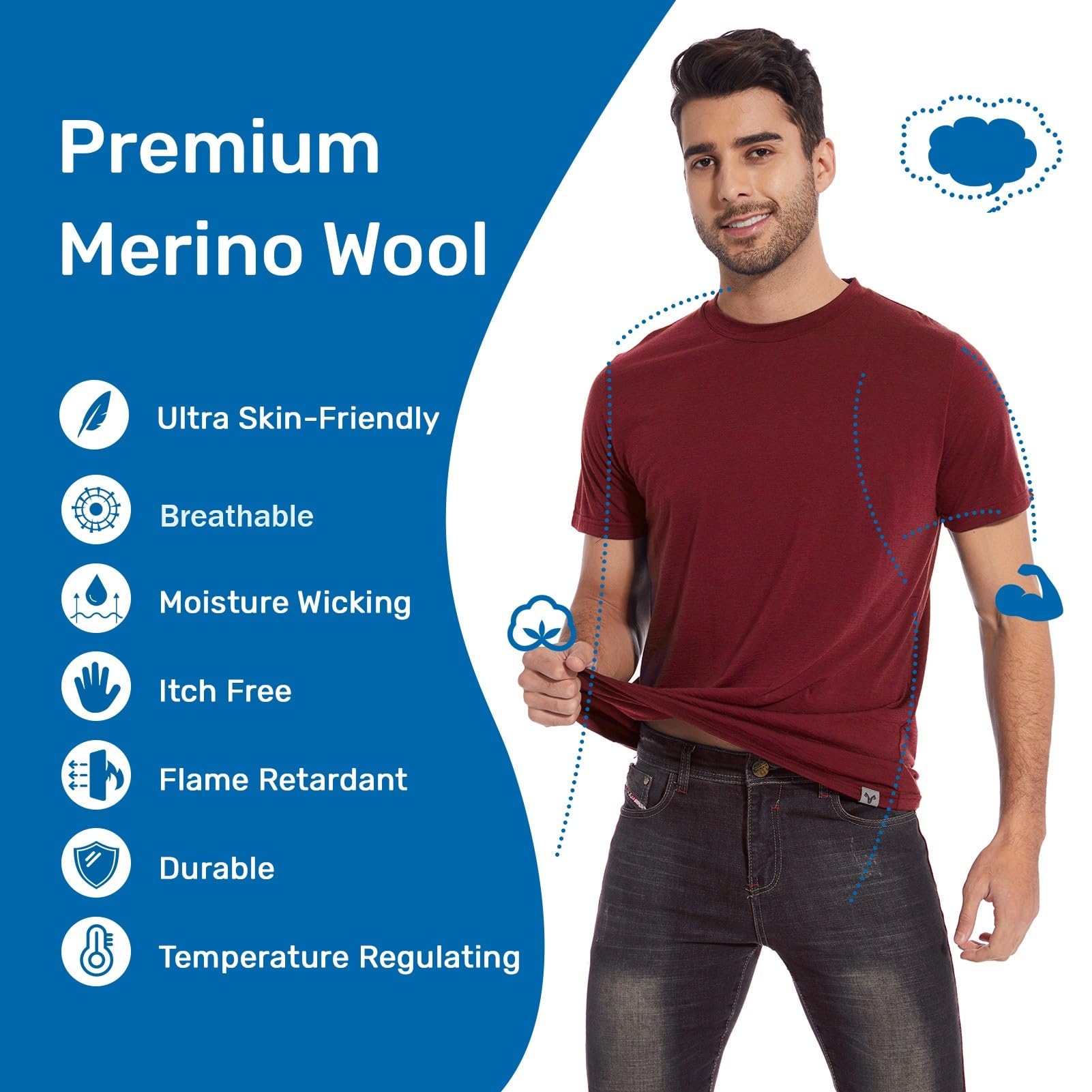 MERINNOVATION Merino Wool T-Shirt Mens Wicking Merino Wool Undershirt Lightweight Base Layer (Wool Socks Included Cabernet