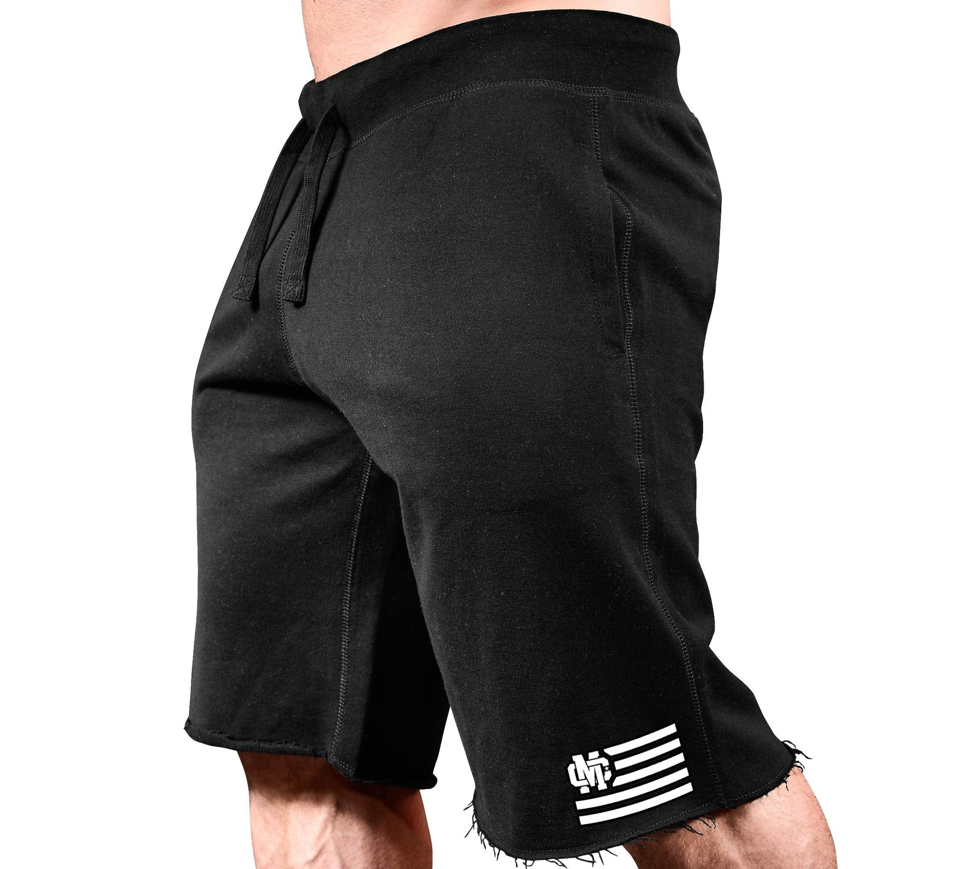 Monsta Clothing Co. Men's Workout (MC-CrestFlag) Gym Sweat Shorts (G:BK-A:WT/BK)