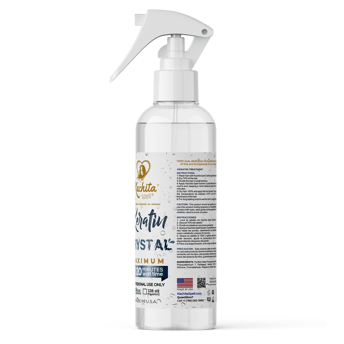 NEW Keratin Crystal Maximun Kachita Spell 20 min Express HairTreatment 16 floz long Lasting Blowout Professional Results Straightening and Smoothing Queratina Keratina (16 oz)