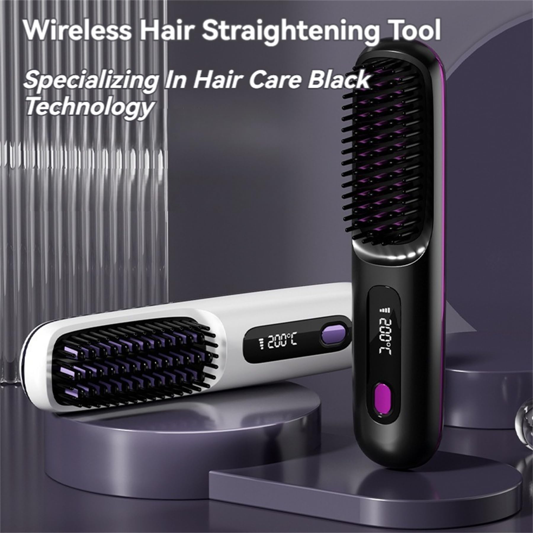 - 【Cordless & USB Rechargeable】Lightweight and portable, this hair straightening brush provides cordless convenience for styling anywhere, free from tangled wires. Ideal for travel, work, or quick touch-ups on the go.