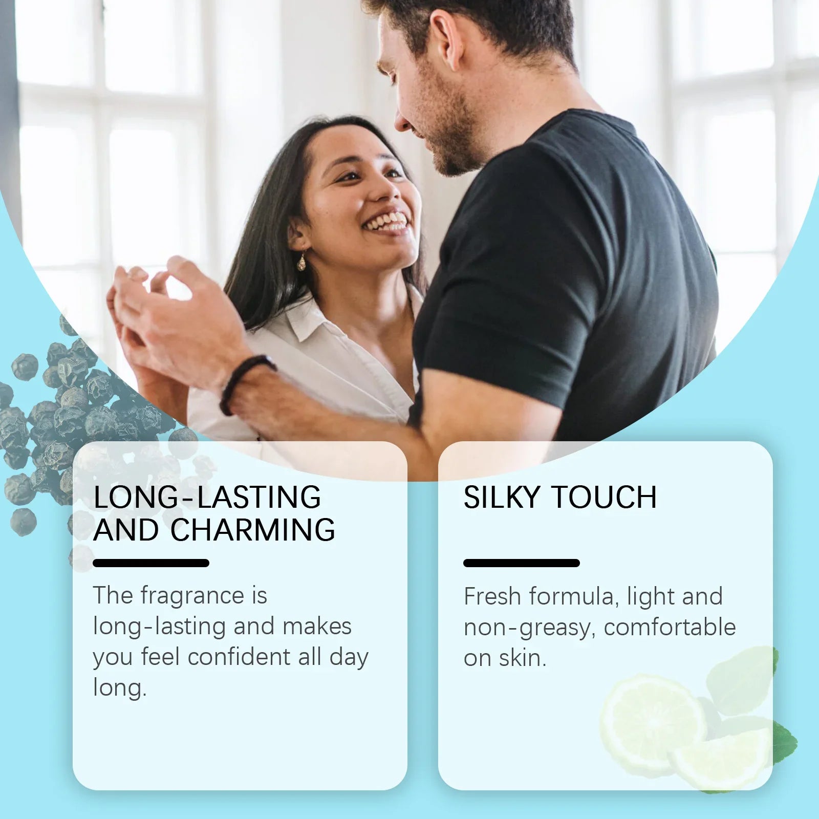 1.Infused with pheromone oil, this long lasting perfume for exudes sophistication, boost confidence, making it the ideal fragrance for men on the go.