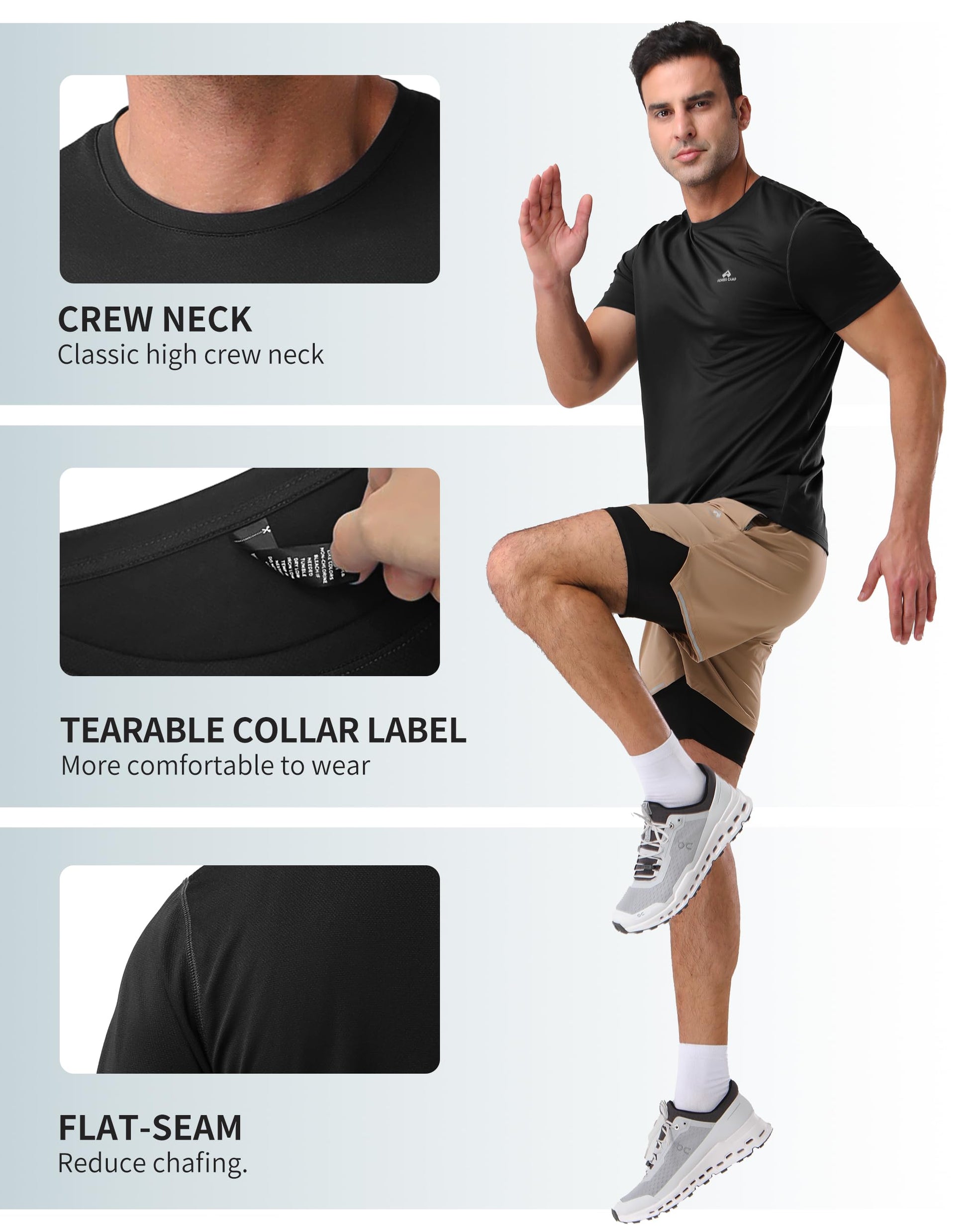 Pioneer Camp Men's Workout Gym Shirts Moisture Wicking Athletic Performance T-Shirts Quick Dry Running Active Top Tees Black