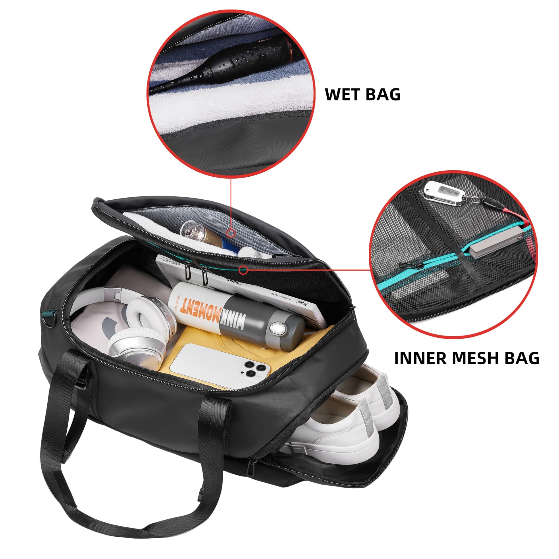 PreciousU Waterproof Gym Bag for Men,Sports Workout Training Overnight Duffle Bag with Shoe Compartment,Backpack Shoulder Straps and Wet Material Separation for Airplanes,Weekender Traveling.