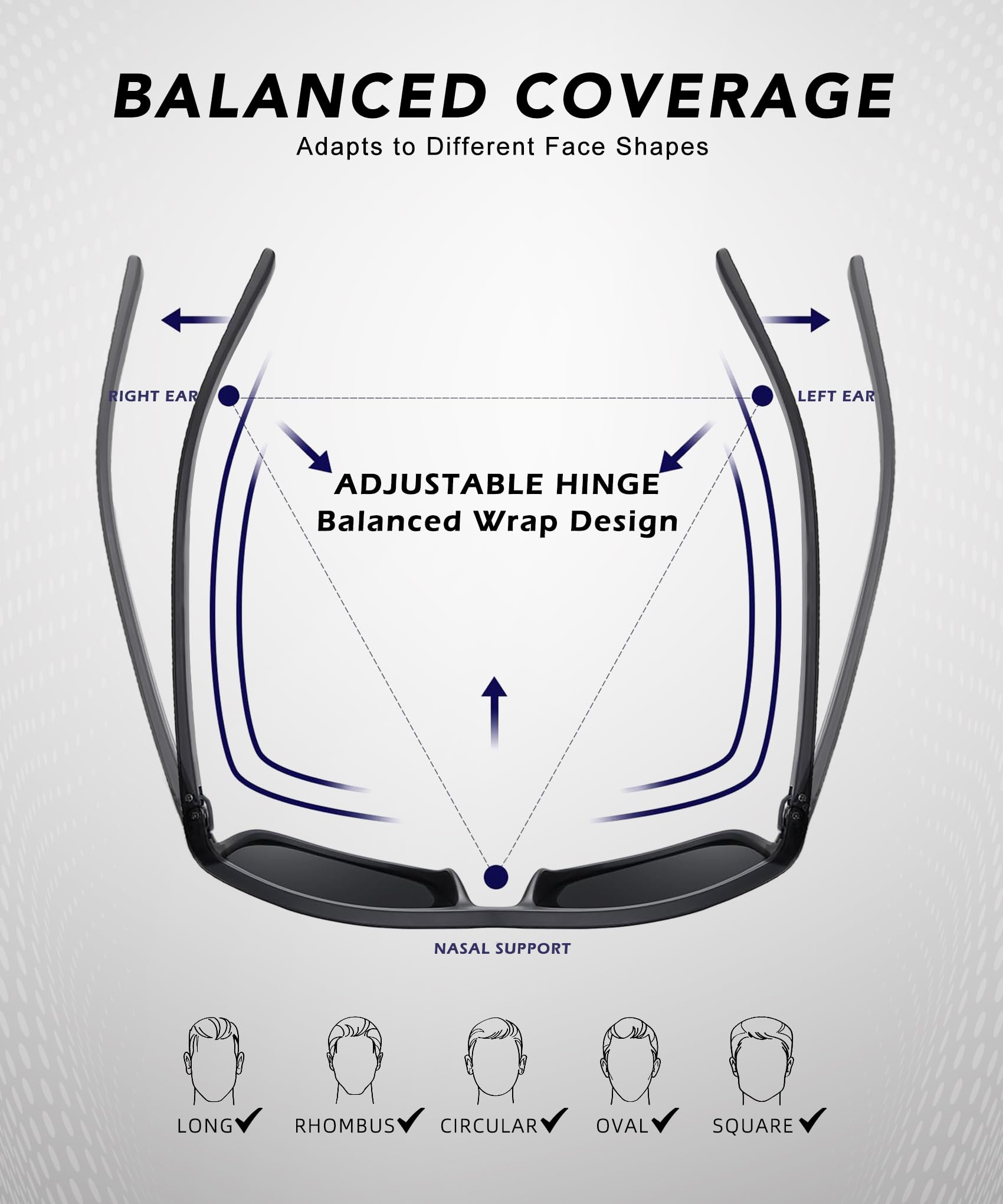 QALLY Polarized Sunglasses Men, Mens Sunglasses Polarized UV protection Lightweight Sun Glasses for Driving Fishing Golf