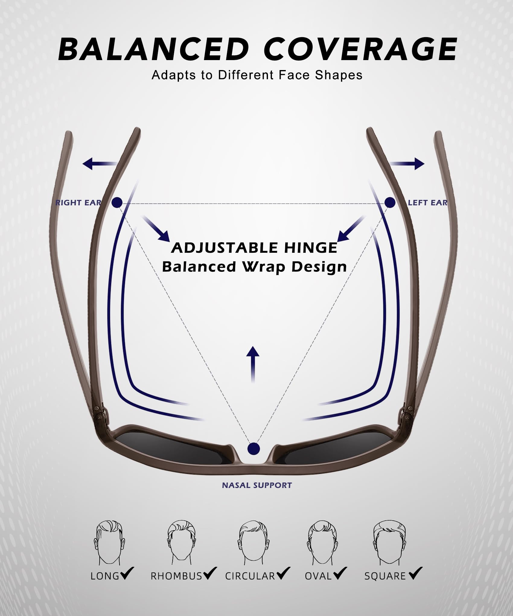 - π High-Quality Materials βΆ Crafted from premium materials, QALLY sunglasses for men are designed to offer superior durability and resistance to high temperatures. The spring hinges allows the mens polarized sunglasses to comfortably conform to various face shapes, ensuring they stay securely in place throughout any activity.