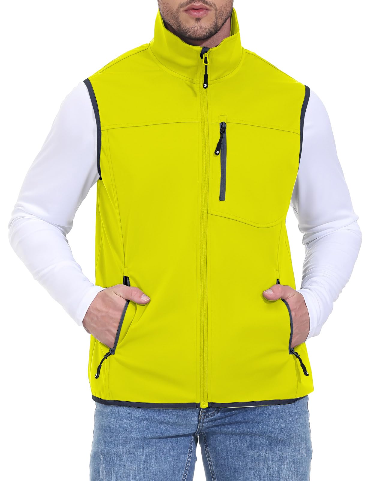 Rdruko Men's Golf Vests Outerwear Lightweight Waterproof Outdoor Running Travel Softshell Vests(Lemon Yellow, US XXXL)