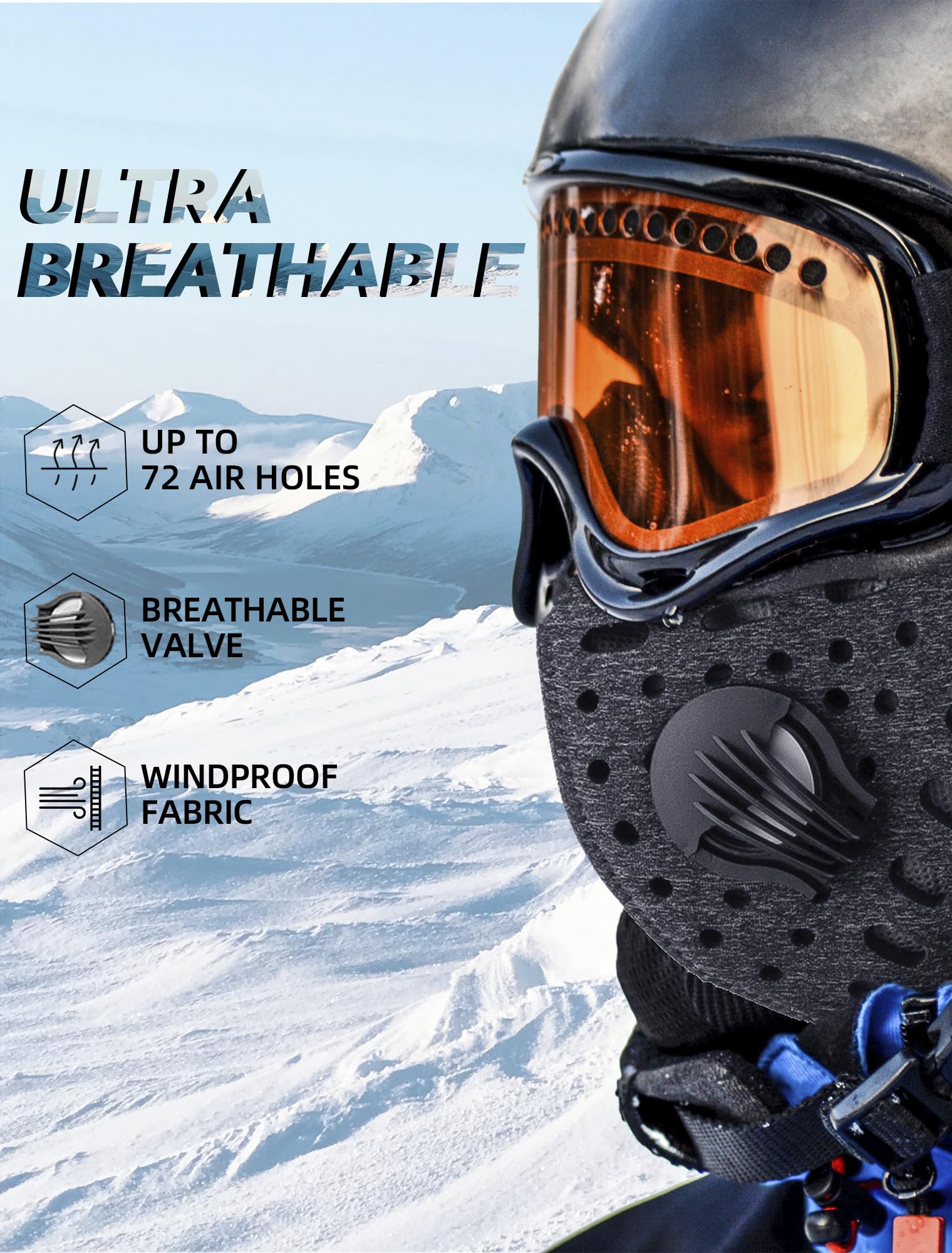 - ANTI-DUST:Combines ski mask with activated carbon filters provide a double protection for you in winter with warm and dust-proof