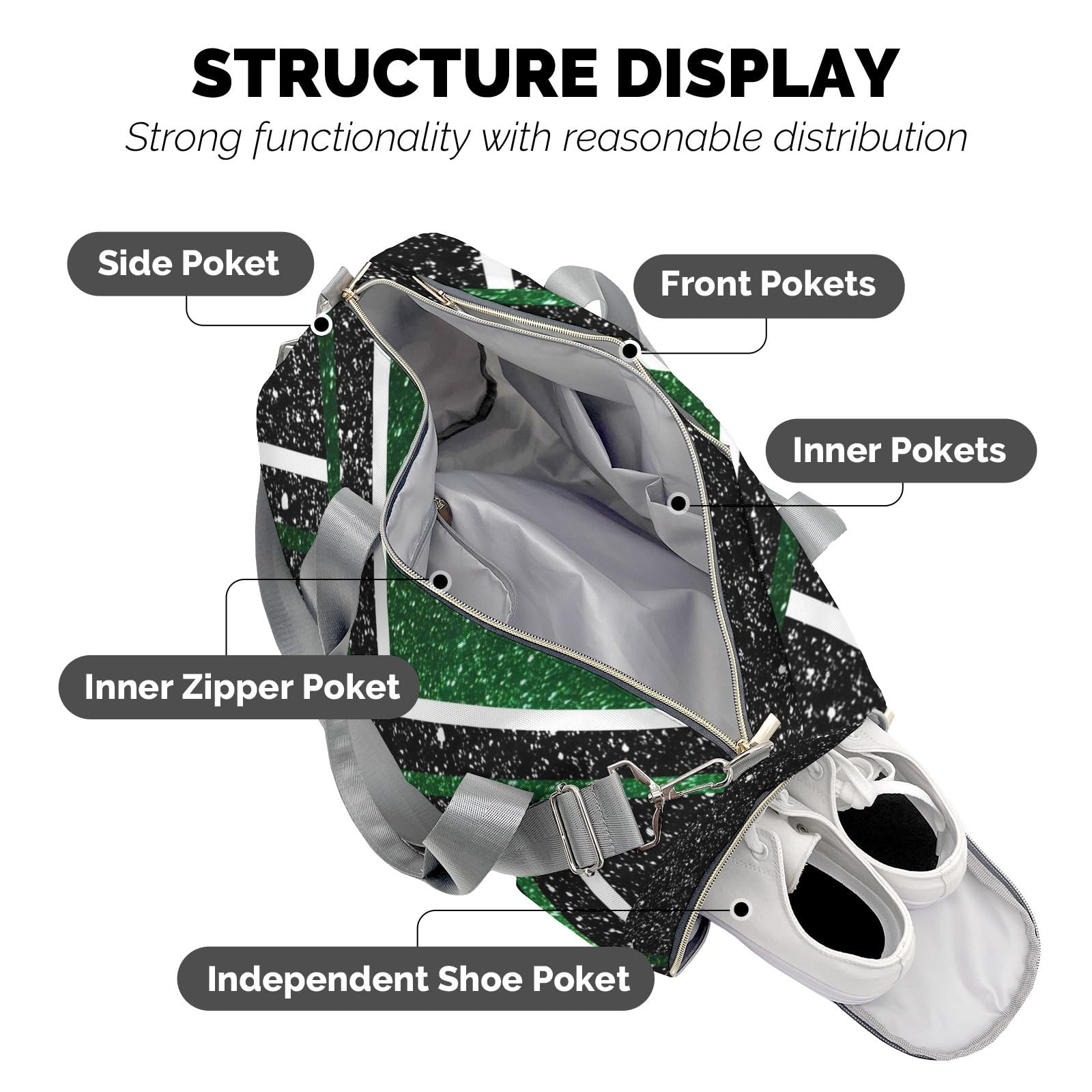 Ronxzas Cheer Cheerleader Sports Duffel Bag Travel Duffle Gym Bags Weekender Bag with Shoe Compartments (Dark Green)