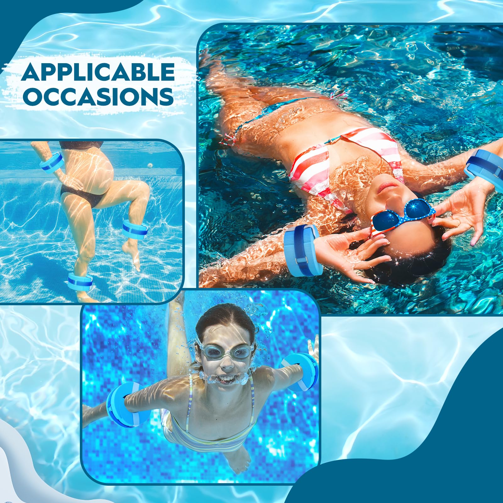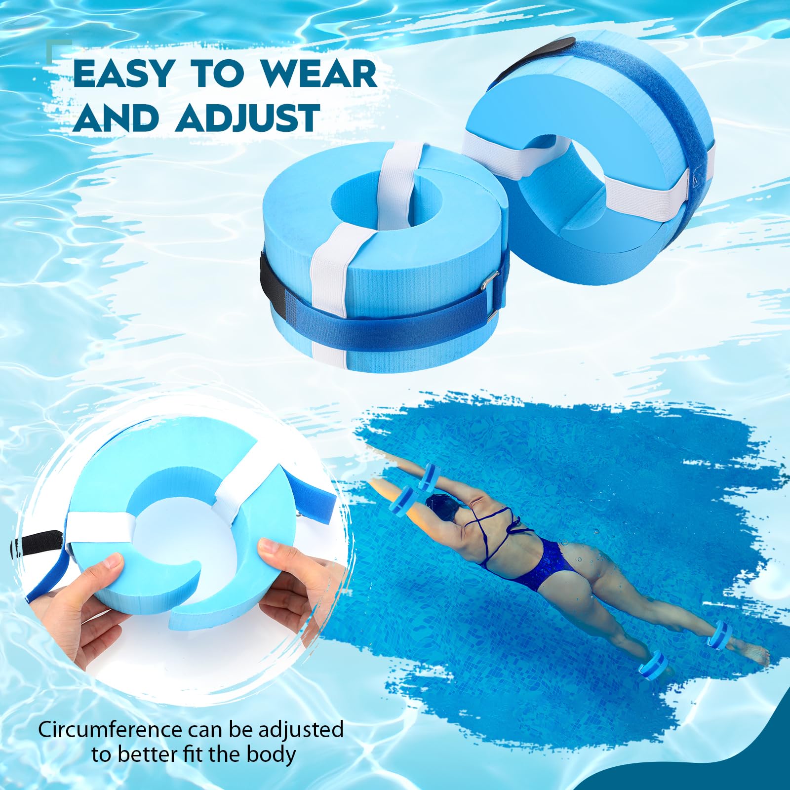 RoundFunny 2 Pcs Foam Swim Aquatic Cuffs Equipment Water Aerobics Float Ring with Detachable Hook and Loop Fastener Fitness Workout Set for Swimming Fitness Training Pool Exercise (Blue)