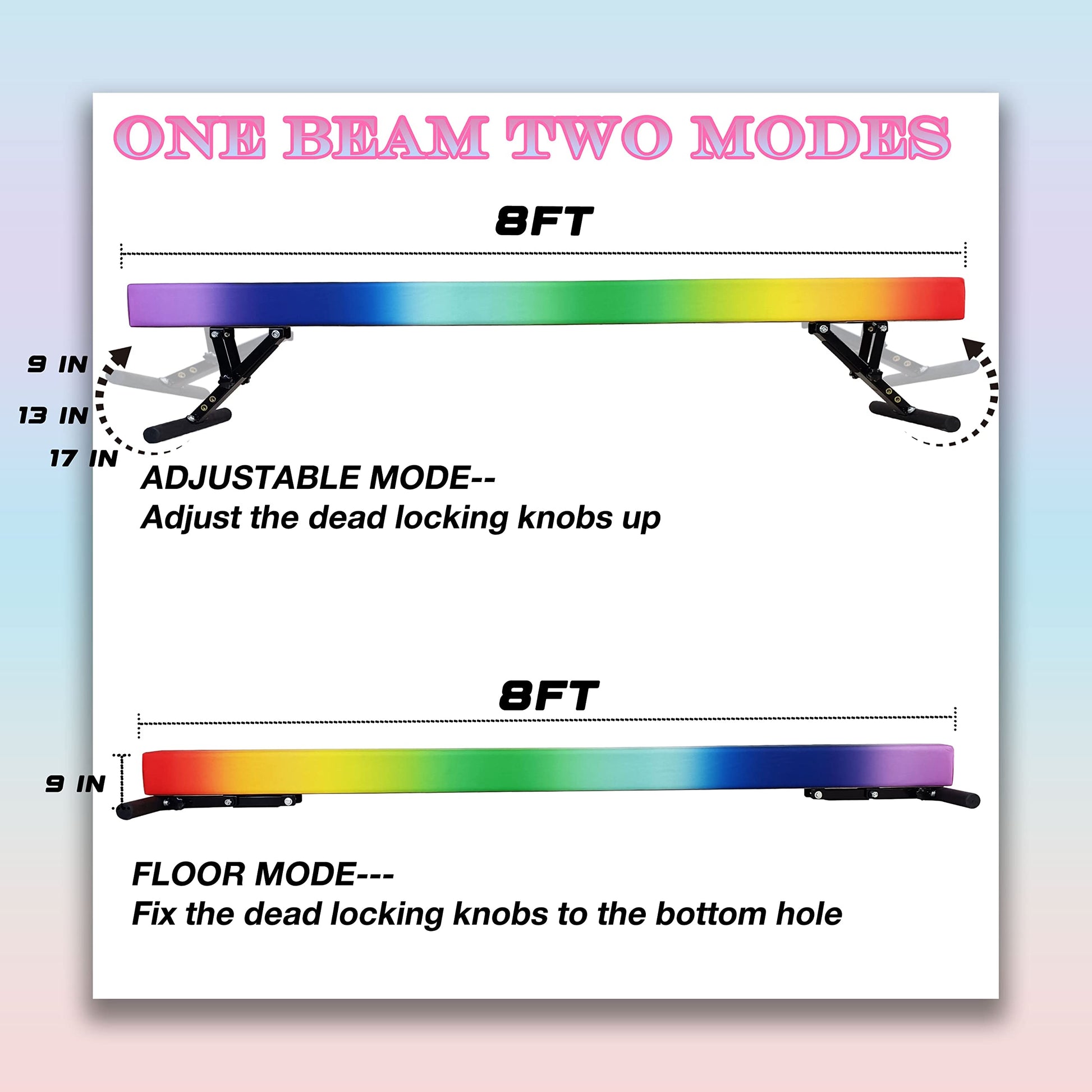 - Perfect Size For Home: The balance beam measures 8 feet in length,4 inches in width. adjustable height, it meets the training requirements of normal gymnastic equipment.weight limit of 350 pounds ,Suitable for both beginners and highly skilled gymnasts