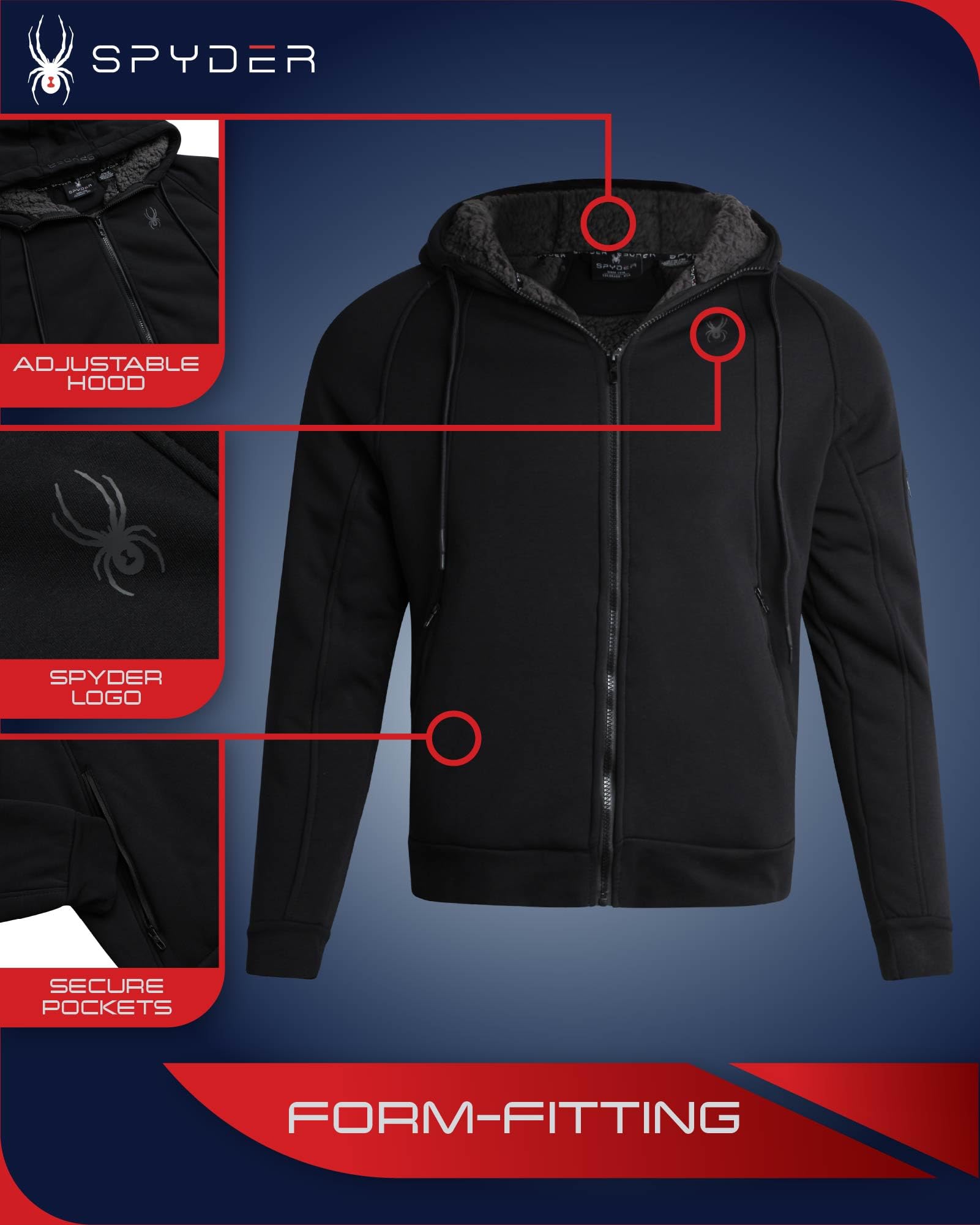 - OFFICIALLY LICENSED SPYDER: Fleece Jacket for Men with Sherpa Lining; Products built with over 40 years of performance research in the science of speed