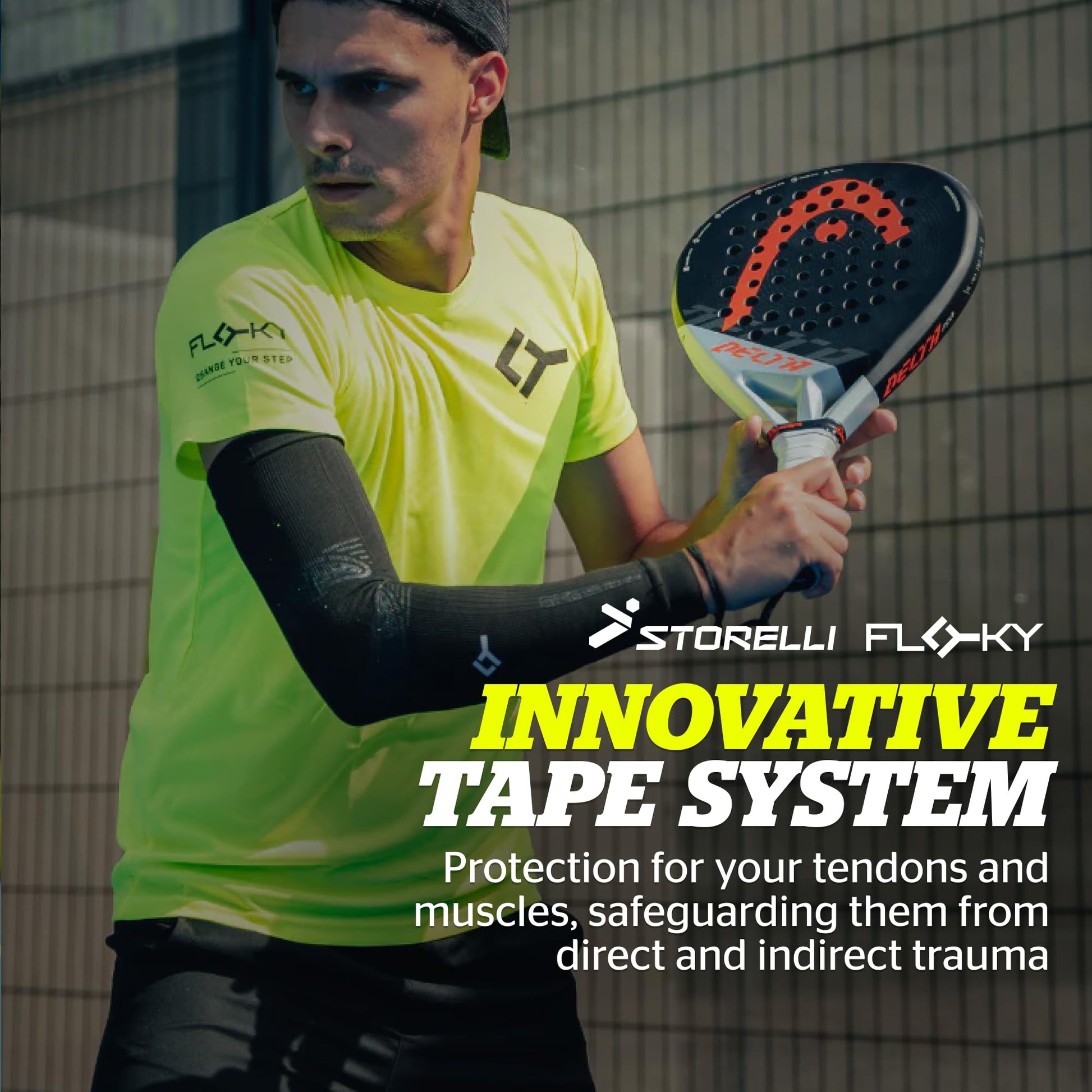 Discover the incredible benefits of Floky's No-Strain professional arm sleeves, designed for both men and women. These sleeves will reduce vibrations, inflammation, and injuries during various sports activities like cycling, running, golf, tennis, baseball, basketball, volleyball, and more. Experience the ultimate protection and support for your elbows, forearms, tendons, and muscles. Feel immediate relief and recover faster. These sleeves provide stability and support to reduce inflammation and the chance of injuries using compression and biomechanical technology. Experience enhanced stability and support. The targeted compression around the elbow and forearm provides extra stability for the tendons during arm and body movements. By reducing vibrations, these sleeves help prevent painful inflammation in these areas. You'll stay protected with the arm sleeves featuring the innovative Tape System. This system protects your tendons and muscles exceptionally, guarding them against direct and indirect trauma, which helps promotes quick recovery and regeneration of muscle functions. The arm sleeves also interact with your body heat, promoting faster tissue repair, resolving inflammation, and stimulating microcirculation. This design accelerates the healing process, helping you recover more quickly and maintain optimal performance. Get ready to optimize your athletic performance and protect your arms with Floky's No-Strain professional arm sleeves. Whether engaged in intense training or competing at the highest level, these sleeves offer unmatched support, stability, and recovery benefits. Step up your game confidently and take your athletic performance to new heights.