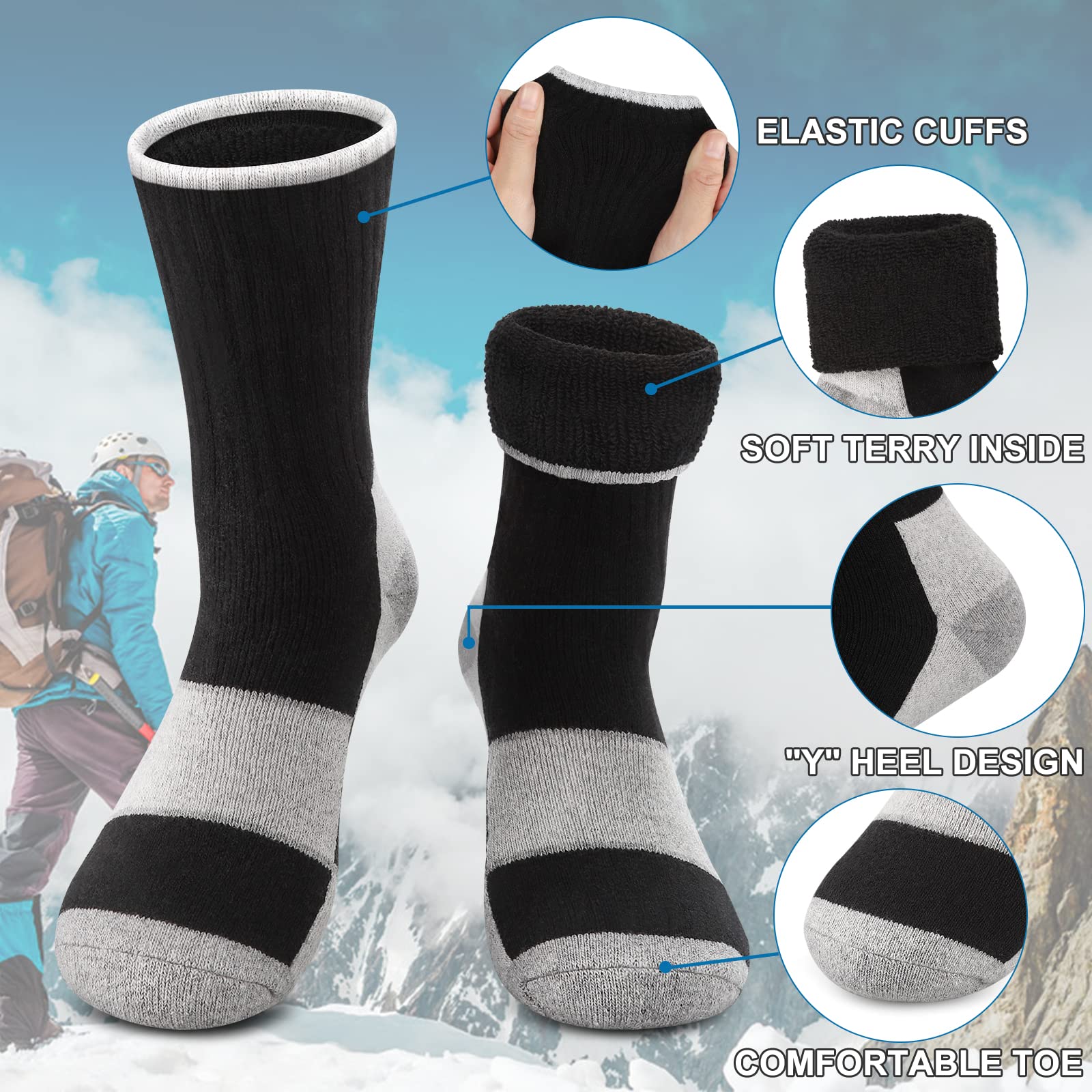 Thermal Socks for Men, 4 Pairs Thick Wool Warm Socks Men Winter Soft Walking Hiking Socks Mens Woolen Heavy Cosy Boot Socks for Cold Weather Crew Socks Size 6-12