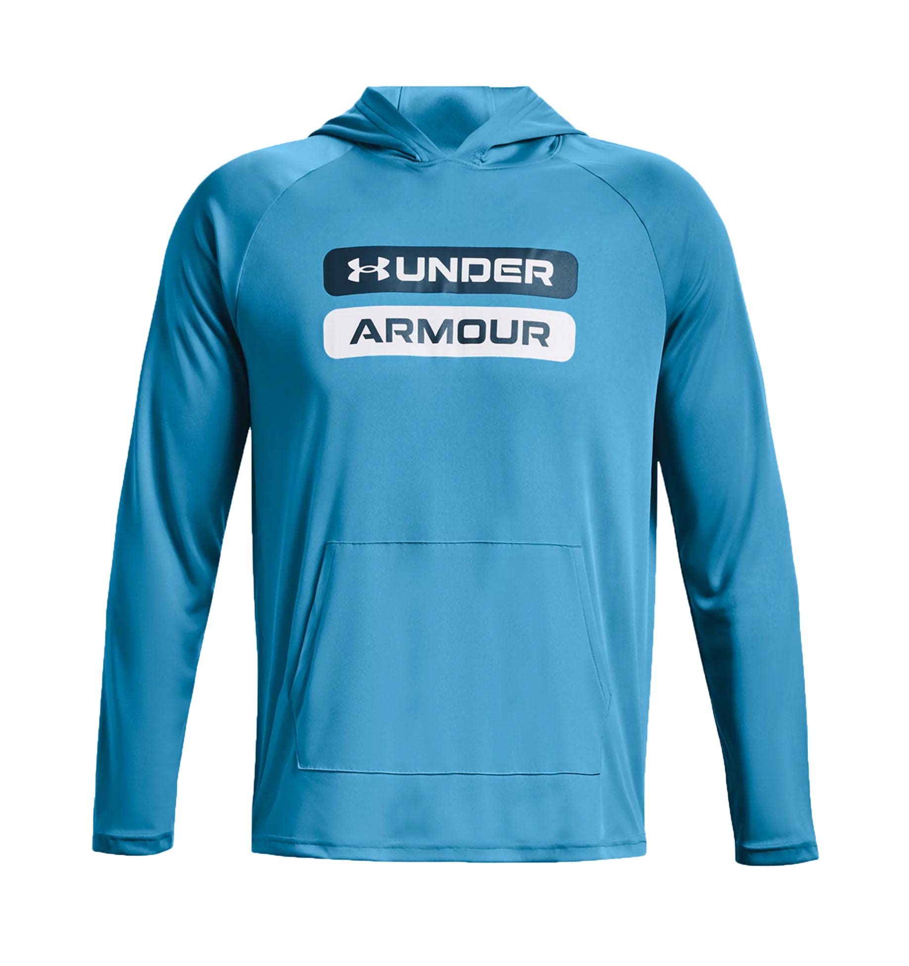 Under Armour Men's Velocity Wordmark Long Sleeve Hoodie (as1, alpha, x_l, regular, regular, Radar Blue/Blue Note 422)