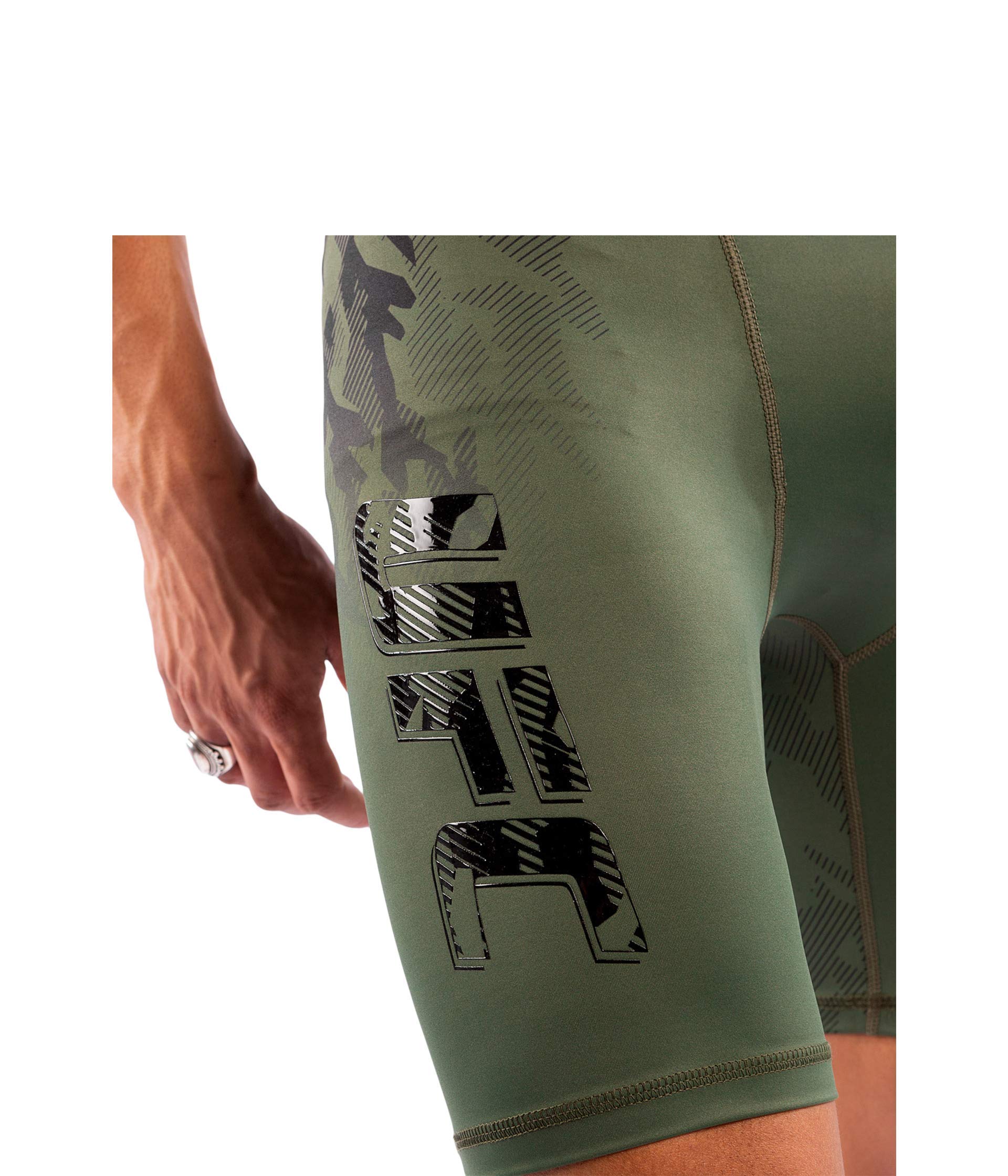 The Venum Fight Week Vale Tudo Shorts are a mid-thigh length compression short. The 'second skin' is designed to provide optimal muscular support. The Fight Week compression shorts will stay in place no matter your movements and can be worn alone or under a pair of Fightshorts. Ergonomic and engineered to wick perspiration from the skin, the Venum Fight Week Vale Tudo shorts are the result of a collaboration between the world's leading mixed martial arts organization, the UFC, and Venum, an iconic and influential brand in MMA since 2005. The Fight Week collection is the range worn by fighters during the week before their fights. Composed of Dry-Tech t-shirts, Fightshorts, compression shorts, and tracksuits.