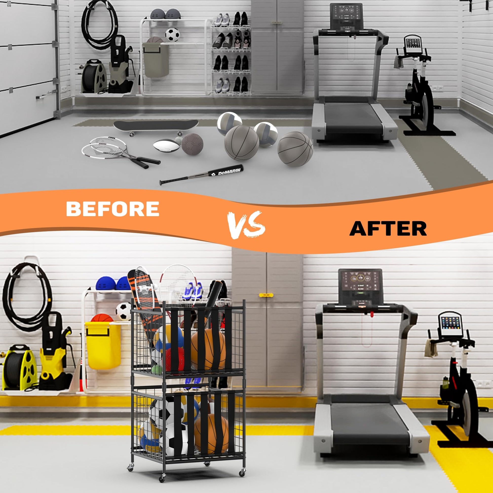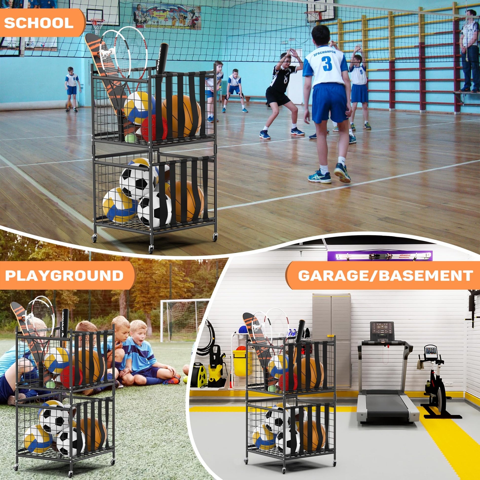 WALMANN Garage Ball Storage, Sports Ball and Sport Equipment Organizer Ball Storage Rack Indoor/Outdoor Rolling Ball/Toy Storage Cart