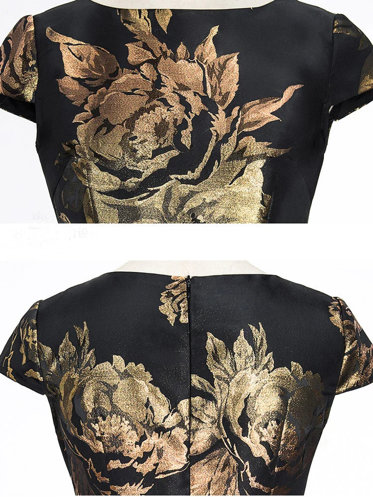 Women Fashion Vintage Elegant Dress Summer Long Maxi Dress Causul Jaquard Floral Party Clothing Vestidos Lady Office Dress