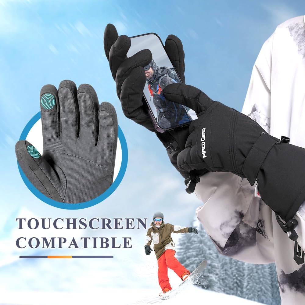 WTACTFUL Waterproof Insulated Mens Ski Gloves Touchscreen Winter Warm 3M Thinsulate Skiing Snowboard Snowmobile Cold Weather Gloves Black XL